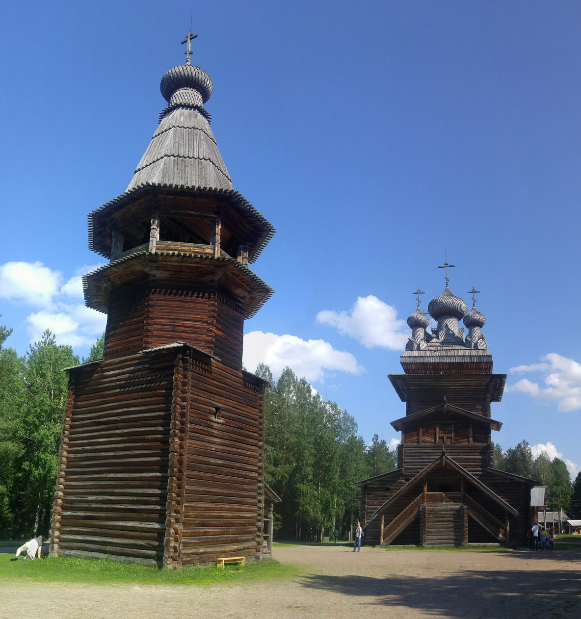 Вологодская губерния, Сольвычегодский уезд, село Кулига-Дракованово. Колокольня из деревни Кулига-Дракованово является одной из самых древних колоколен башенного типа. В основании колокольни небольшой сруб-четверик, на котором базируется высокий восьмигранный сруб — восьмерик. Венчает колокольню восьмигранный шатёр со шлемовидной главкой. Главка покрыта лемехом. Колокольня является самым архаичным памятником в музее. Специалисты определяют время её постройки концом XVI века. http://www.duster-clubs.ru/forum/att...chmentid=73585 |