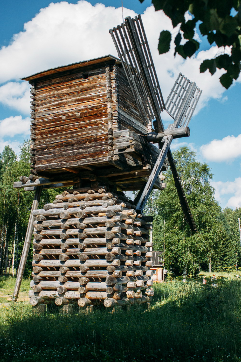Архангельская губерния, Мезенский уезд, деревня Азаполье. Мельница-столбовка была построена в конце XIX века. Как и у всех «столбовок», конструктивной основой мельницы является вертикальный столб. Он окружён высоким, рубленным «в ряж» срубом. Такой тип мельничного основания был характерен для крестьянских поселений, расположенных в бассейне реки Мезени. Внутри ряж имеет стены-перерубы, идущие в продольном и поперечном направлении. Они сжимают вертикальный столб с четырёх сторон, обеспечивая его большую устойчивость. В верхней части ряж плавно сужается, образуя у основания мельничного амбара узкую «шейку». Мельничный амбар представляет собой рубленный из бруса сруб, крытый «по потокам и курицам». Сквозь его торцовую стену проходит горизонтальный вал с закреплёнными на конце крыльями. Снаружи вал дополнительно поддерживается консольной конструкцией, сделанной на выпусках нижних брусьев боковых стен. На боковом фасаде мельничного амбара устроен балкон под односкатной кровлей. На балконе установлен ворот — простейшее подъёмное устройство для подъёма в мельничный амбар мешков с зерном и спуска из амбара мешков с мукой. http://www.duster-clubs.ru/forum/att...chmentid=73592 http://www.duster-clubs.ru/forum/att...chmentid=73593 http://www.duster-clubs.ru/forum/att...chmentid=73594 http://www.duster-clubs.ru/forum/att...chmentid=73595 http://www.duster-clubs.ru/forum/att...chmentid=73596 Просторы...