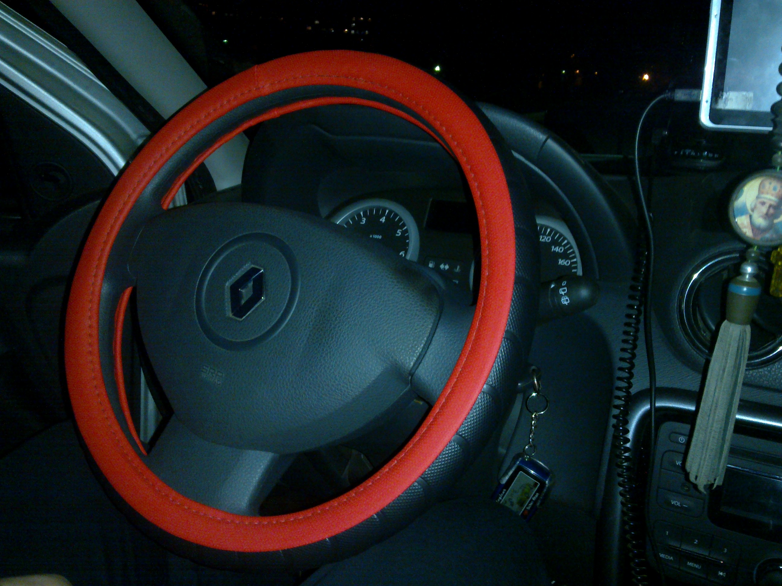 Тоже оплетка. Знал, что ее натяну, еще до приобретения авто. Потому как дастеровский руль изначально худосочный. А с оплеткой стал мягкий, пухлый бублик. Ну и защитная функция, ессно.