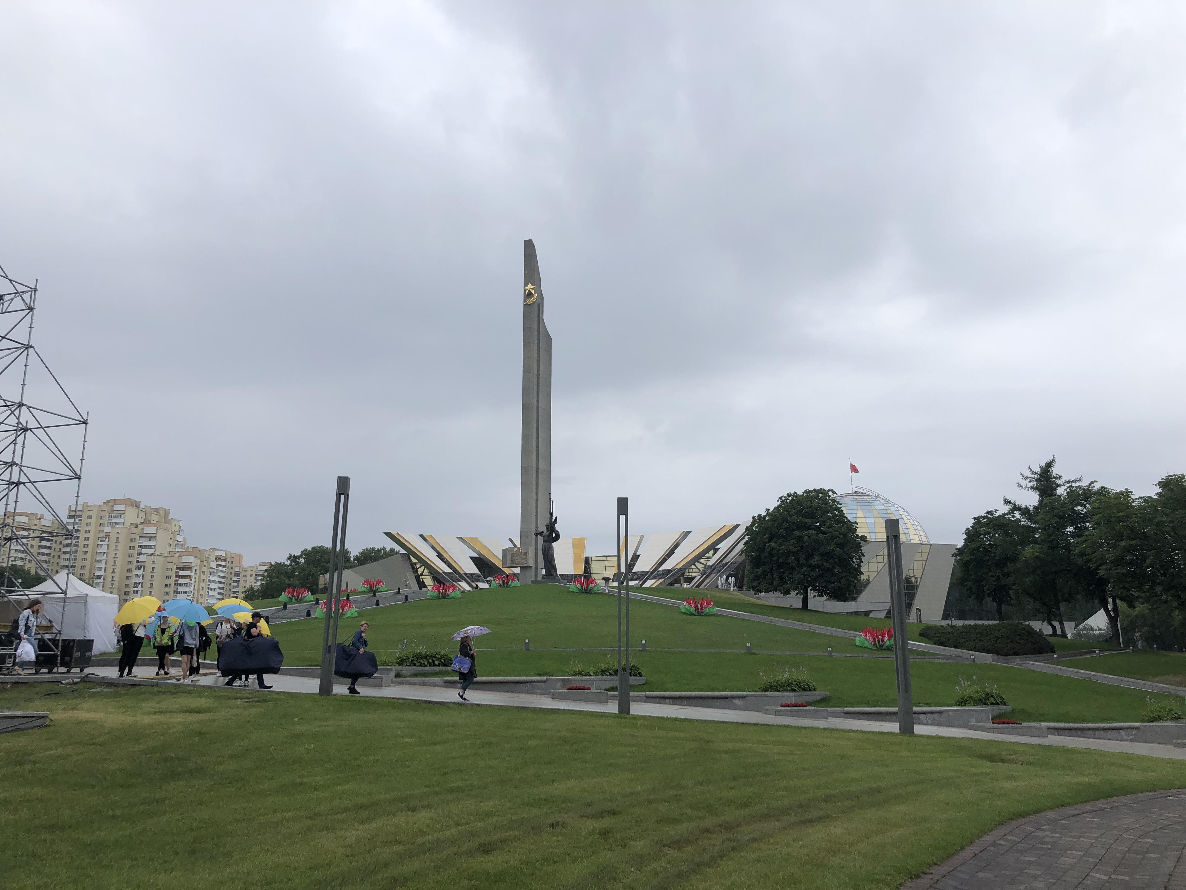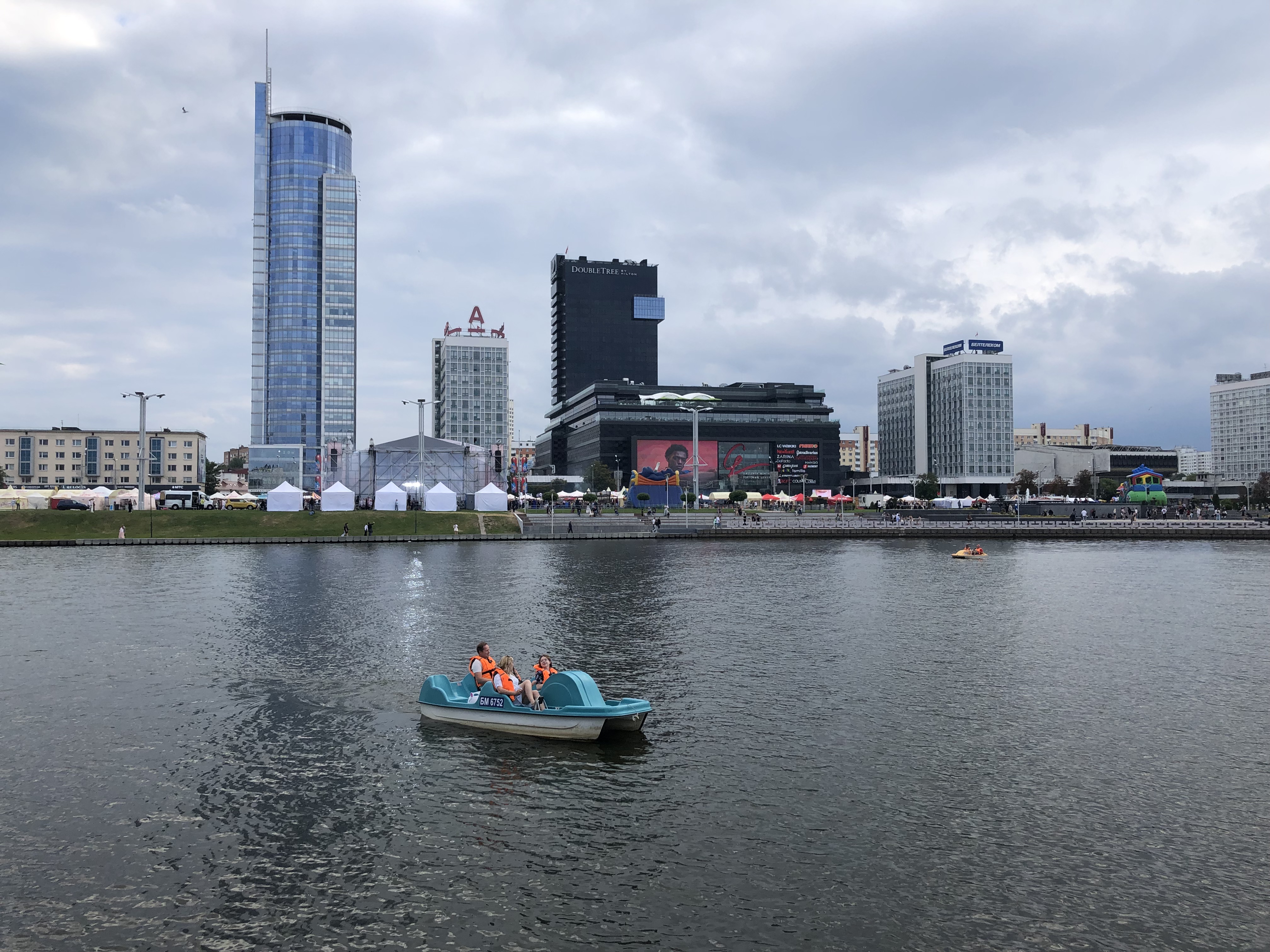 прошлись до музея, посетили его, потом через парк у реки Свислоч до ТЦ "Замок" (здесь обзавелись наликом) напротив резиденции Лукашенко (дворец независимости) и в отель