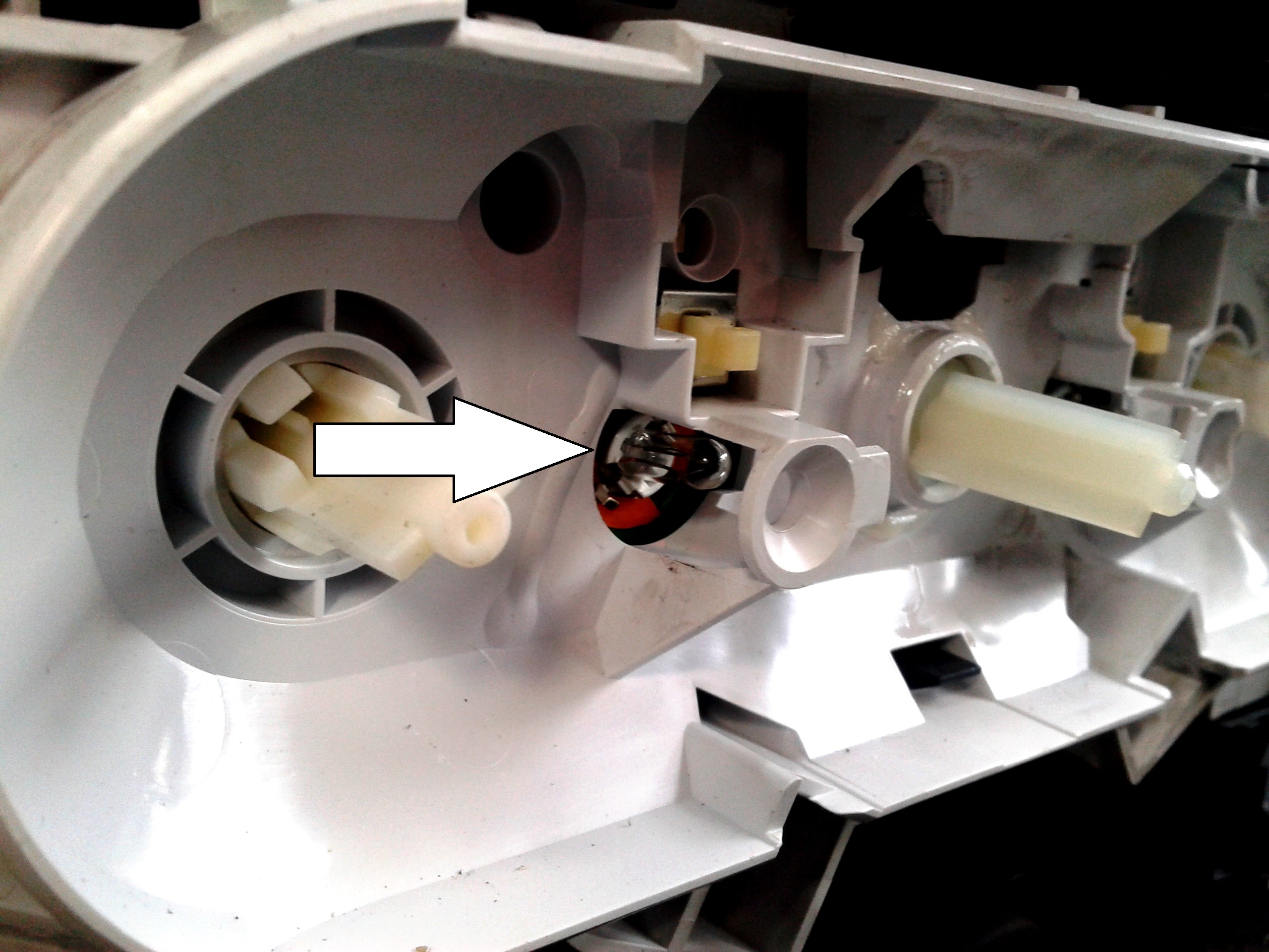 8. Поворачиваем цоколь перегоревшей лампы и вынимаем цоколь с лампой из пазов, меняем лампу и собираем в обратной последовательности...