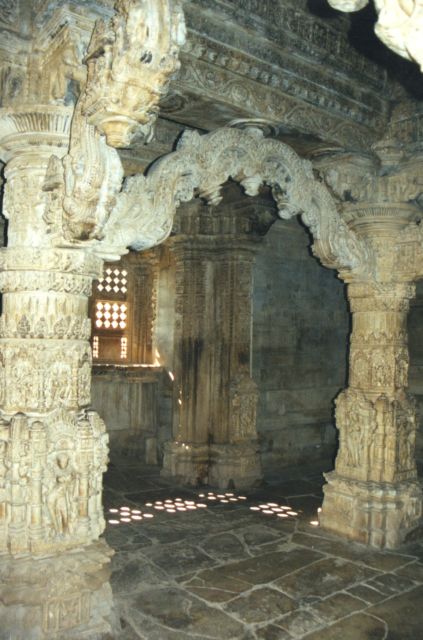 Разрушенные остатки древней стошицы Мевара Нагды, которая датируется 626 г. нашей эры, расположены рядом с озером в 20 км на северо-восток от Удайпура Большинство зданий были разрушены моголскими фанатиками. Все, что сохранилось, это великолепная пара вишнуистских храмов десятого века, известных под названием Саас - Баху - что буквально означает “Свекровь” и “Невестка”. Больший из них (Свекровь), богато украшен внутри резьбой. На внешних стенах обоих храмов представлены образы всего индуистского пантеона и цветущие апсары (небесные девы). Вниз по склону холма ведет тропа в храм Эклиджи. Бог Эклинджи, одно из воплощение форма Шивы, являлся божеством-защитником правителей Мевара с самого восьмого века, когда Баппа Равал получил от своего гуру титул дарван (слуга) Эклинджи. И по сей день махараджа Удайпура по-прежнему посещает посвященные ему храмы каждый вечер в понедельник - день, традиционно отмечаемый по всей Индии как священный для Шивы. |