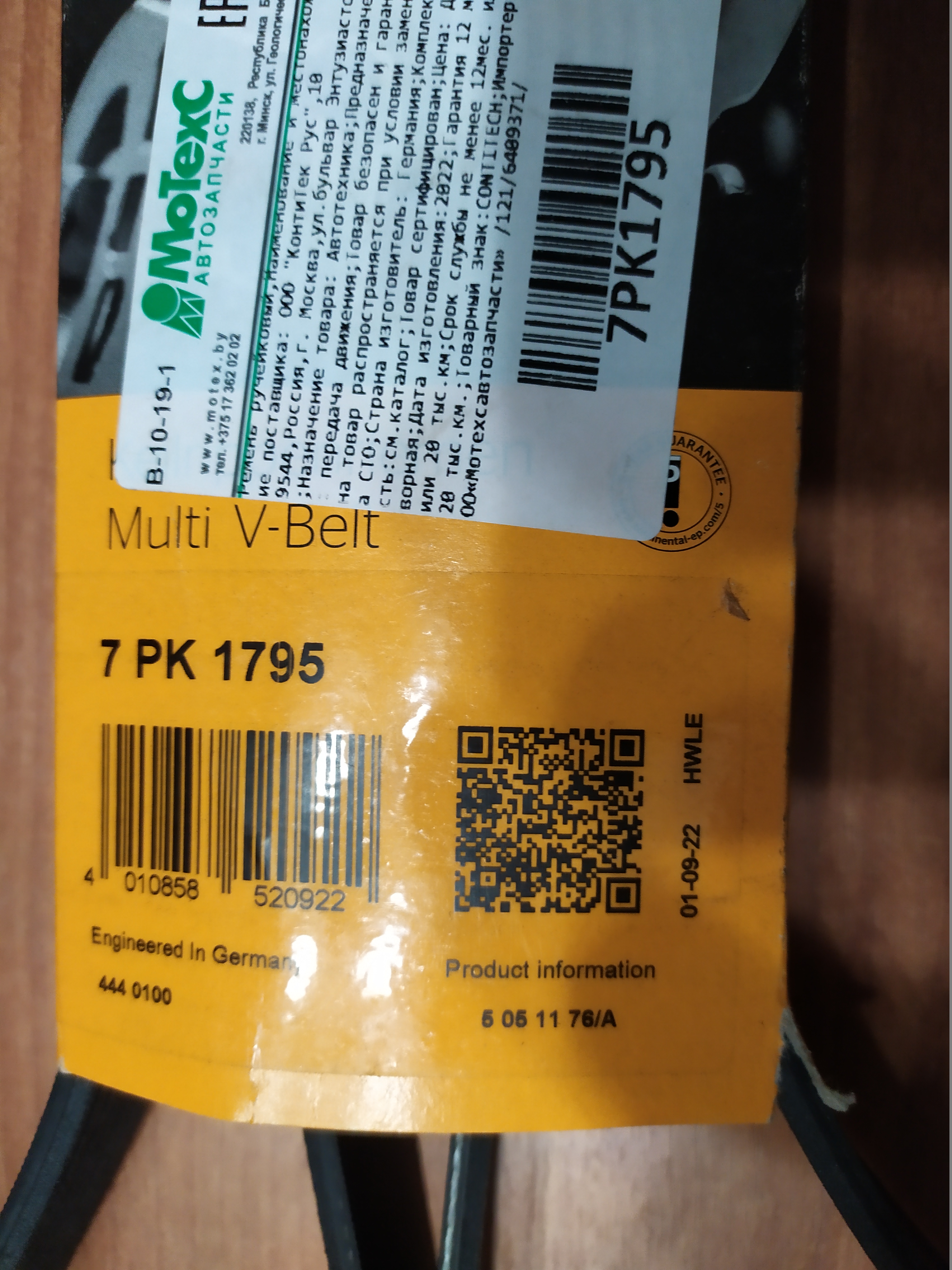 Продам ремень CONTITECH 7PK1795 - новый-1200 руб.