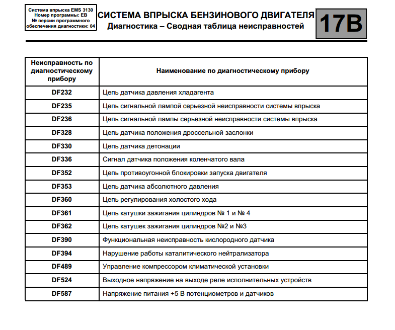 ![]() ![]() ![]() Коды ошибок бензинового двигателя