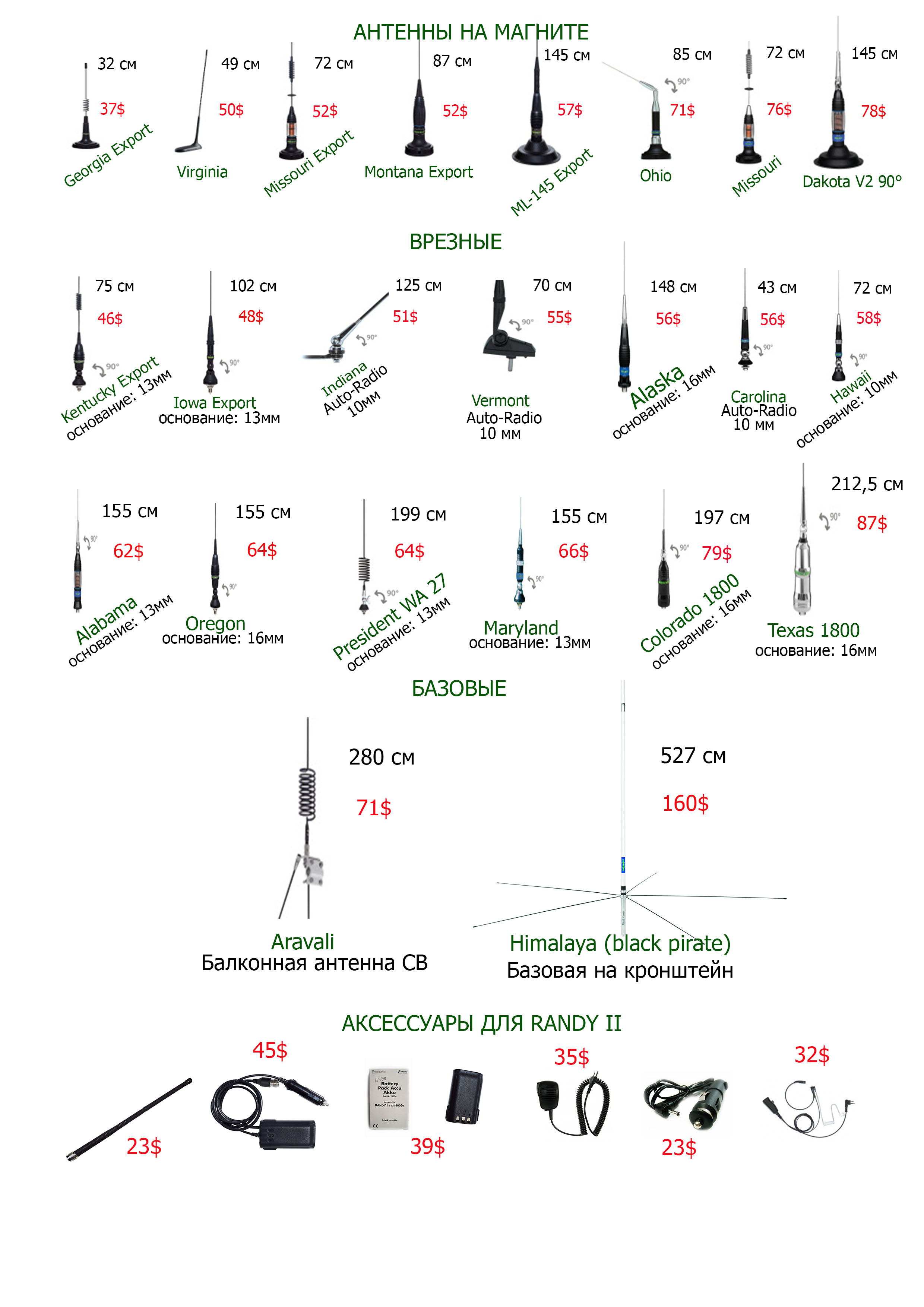 Вас приветствует компания «Президент-Электроникс Восток», официальный и эксклюзивный представитель французской фирмы "PRESIDENT ELECTRONICS " , занимающейся на протяжении более 37 лет разработкой и производством легендарной, высококачественной аппаратуры автомобильной радиосвязи и имеющей представительства во всем мире. Название PRESIDENT - это символ, который объединяет миллионы CB-пользователей по всему миру: водителей автомобилей, путешественников, любителей экстремальных видов спорта и всех тех, для кого важна надежность, качество и автономность передачи информации. Предлагаем Вам нашу продукцию - официально ввезенные CB-Радиостанции и антенны -PRESIDENT ELECTRONICS. Наши радиостанции произведены на заводе Uniden Вьетнам, антенны - President Electronics Iberica SA в Испании BARCELONA , при строгом соблюдении высоких стандартов сборки и контроля качества в соответствии с Европейскими Стандартами EN. Что обеспечивает длительную и бесперебойную работу оборудования. Гарантия на продукцию составляет 5 лет. Предлагаем владельцам клубных карт - скидку на всю продукцию - 10%. Помощь в установке и настройке. Консультации по всем вопросам. С уважением, Генеральный Директор ООО «Президент-Электроникс Восток» Матвеев Сергей Николаевич тел: +7 (495) 978 1704 моб: +7 (901) 5348625 Email: president.electronics.vostok@gmail.com Наш сайт: http://president-electronics.ru АДРЕС : 125371 г.Москва Волоколамское шоссе, дом 116 офис 311 Наш прайс для клуба. Последний раз редактировалось PRESIDENT ELECTRONICS; 30.09.2015 в 10:36. Причина: новый прайс |