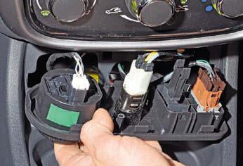Для снятия …отверткой поддеваем накладку… …и выводим ее из облицовки туннеля пола, преодолевая сопротивление восьми фиксаторов. Нажав на фиксатор колодки проводов, отсоединяем колодку от переключателя режимов трансмиссии.
