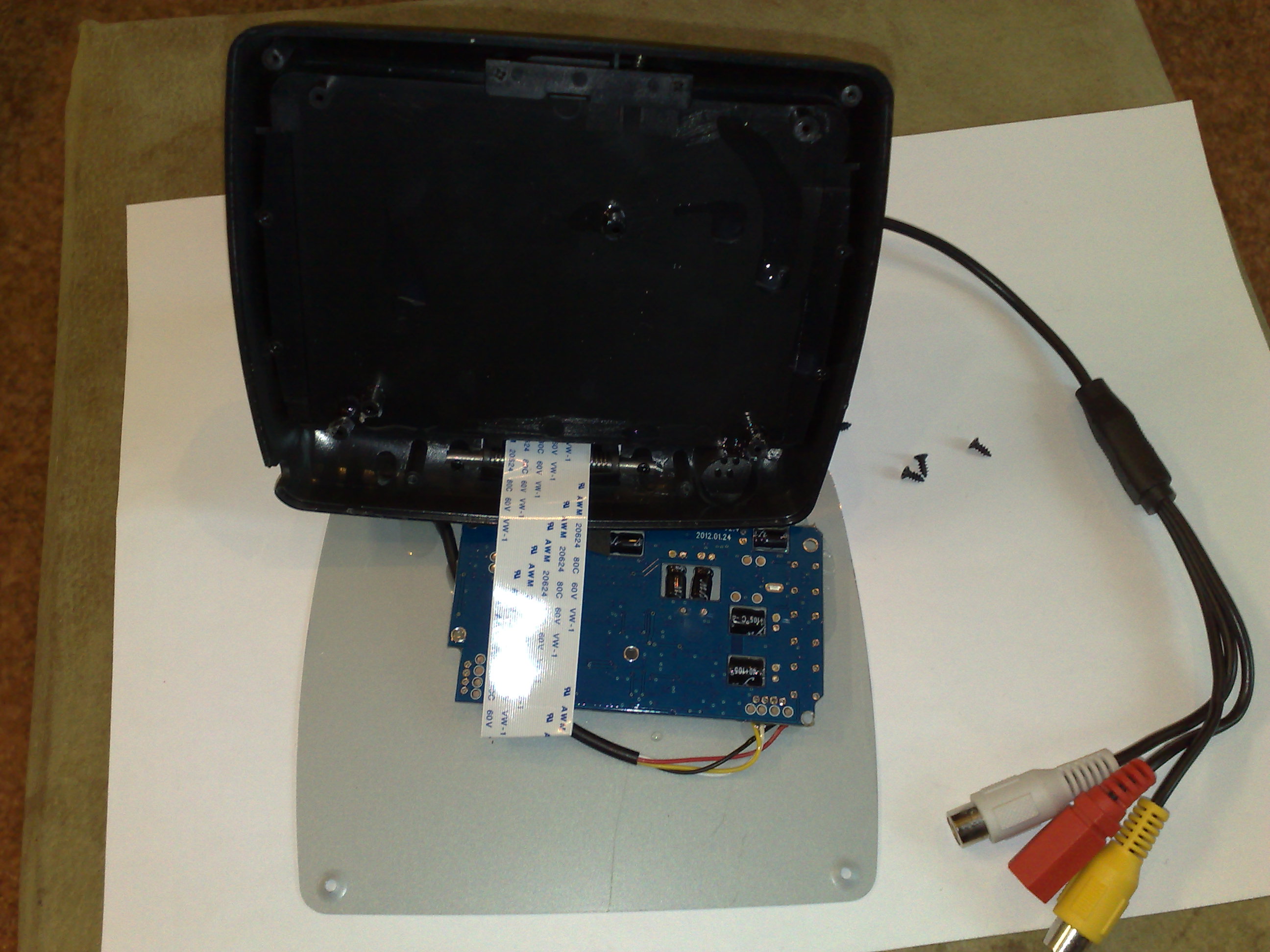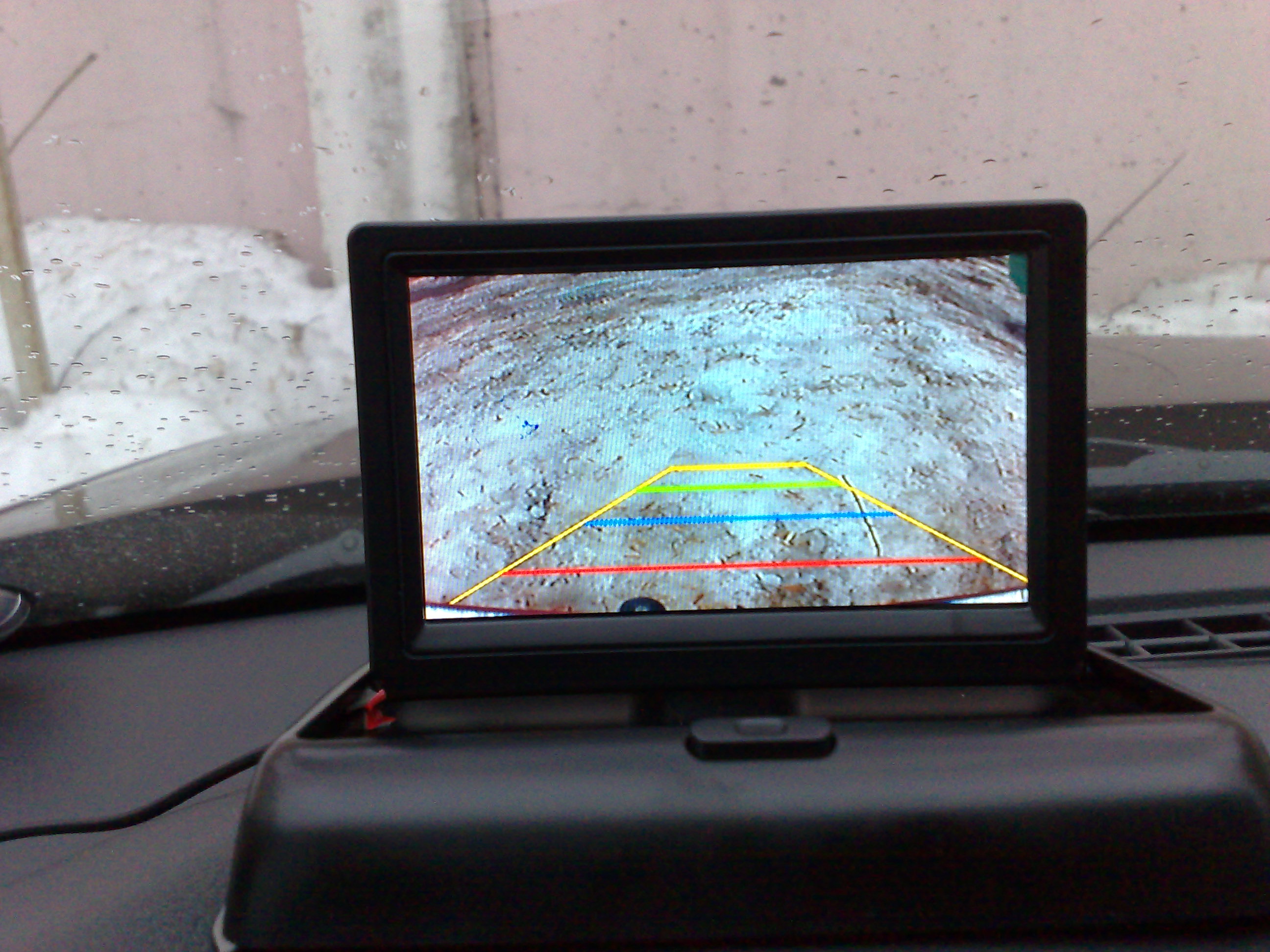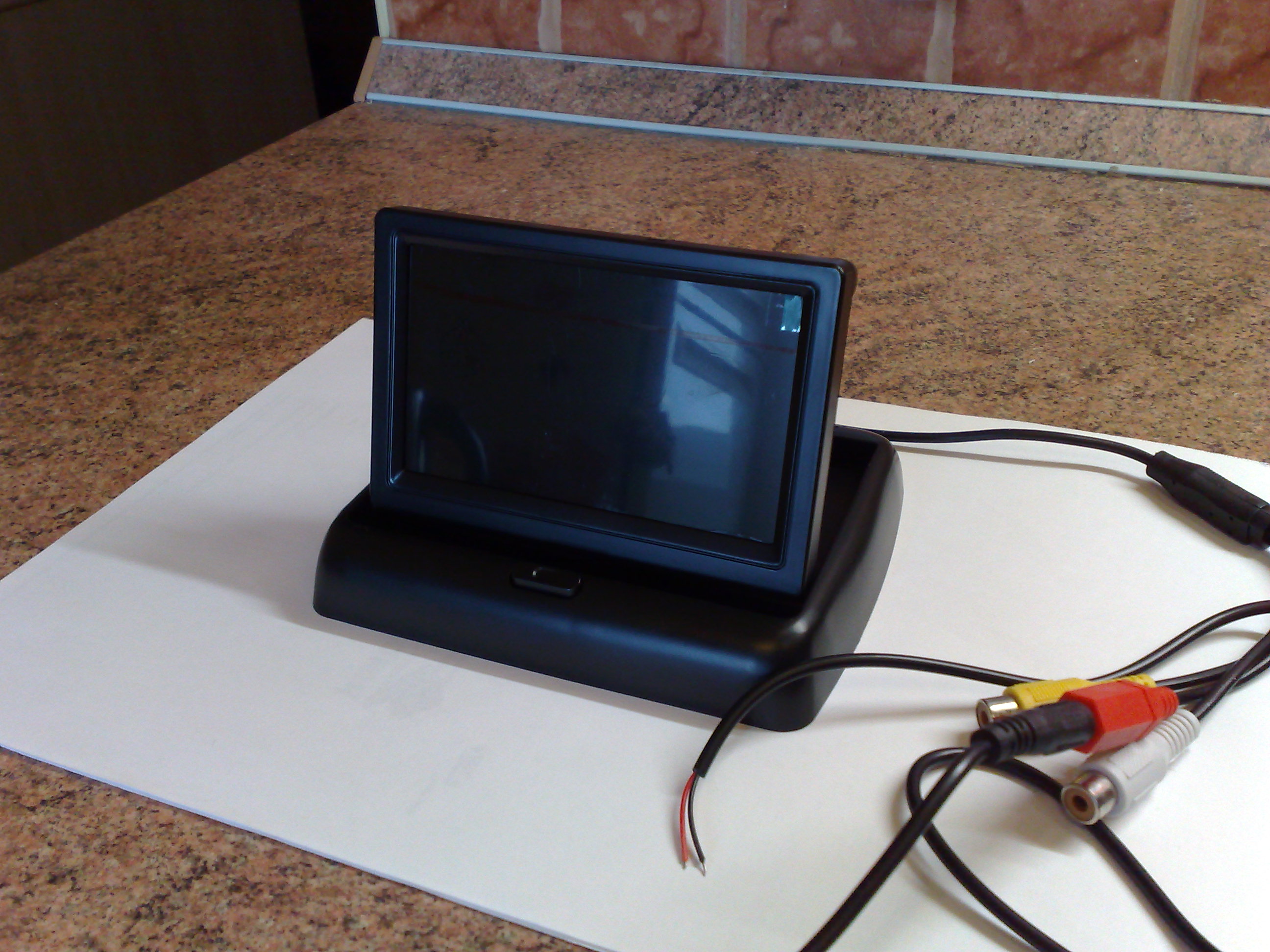 В прошлом году поставил видеокамеру заднего вида, купил за 900р. Проводил сам. Описывать не буду как, писали. Все очень легко, самое трудное, протянуть через гофру пятой двери, но можно и разрезать провод. Монитор стоял складной на панели, это потом я его разобрал и вставил в солнце защитный козырек. Все устраивало. Отдали мне еще камеру зад. вида. Вот и решил использовать второй вход на мониторе. Камеру вторую поставил на доп. фонарь тормоза.Не прижилась ,в нее видно то, что и в зеркала. Снял и решил поставить на перед.