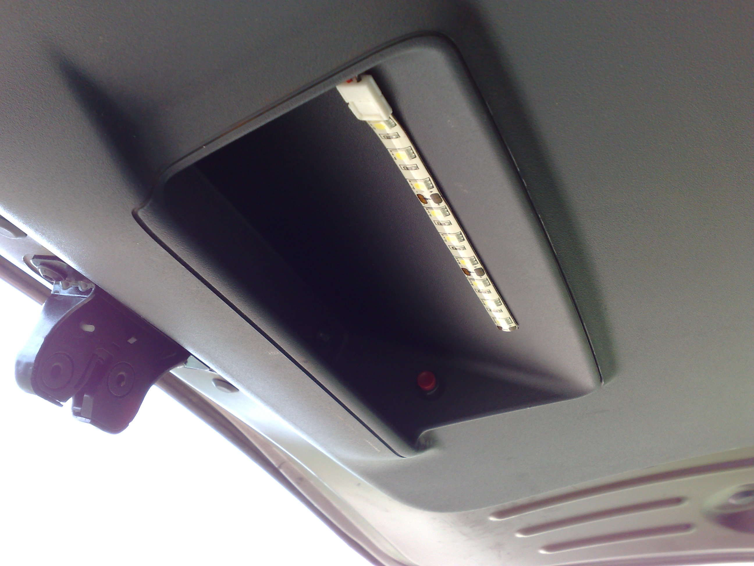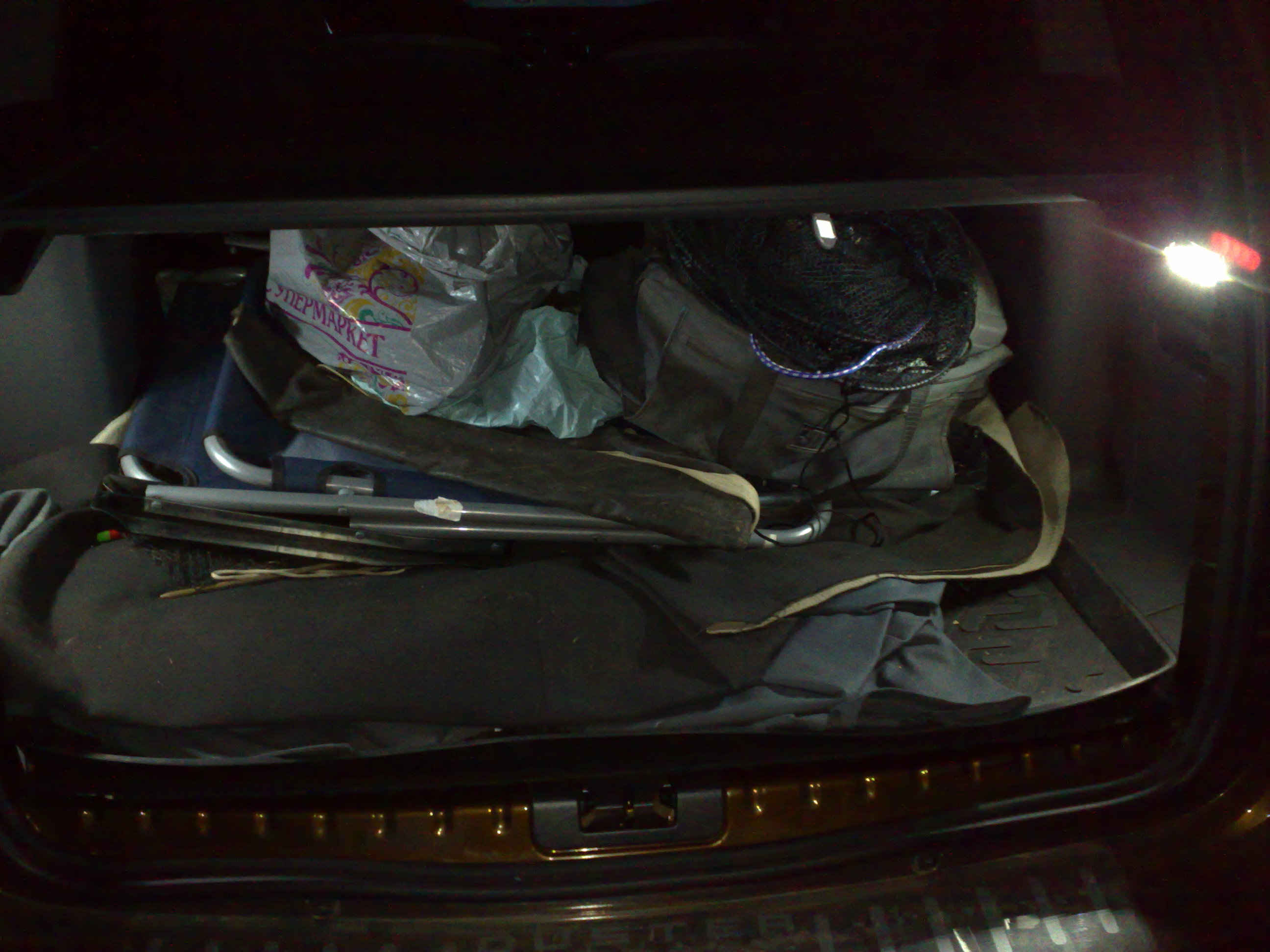 Часто зимой езжу на рыбалку, раннее утро темно, открываю пятую дверь, а света мало, только фонарик в багажнике, который заставлен рыбацкими причендалами. Да еще свет, от габарит. огней. Решил сделать доп. освещение не только в самом багажнике, но и на пятую дверь , чтобы при открытии, нажав на выключатель, включить свет возле машины. Купил светодиод. ленту с коннекторами, приклеил по бокам в багажнике, штатный отключил. На пятую дверь ленту и кноп. выключатель, установил в нишу накладки, умышленно ,т.к. при закрывании багажный груз может повредить ленту или включить свет. Доволен. Советую.