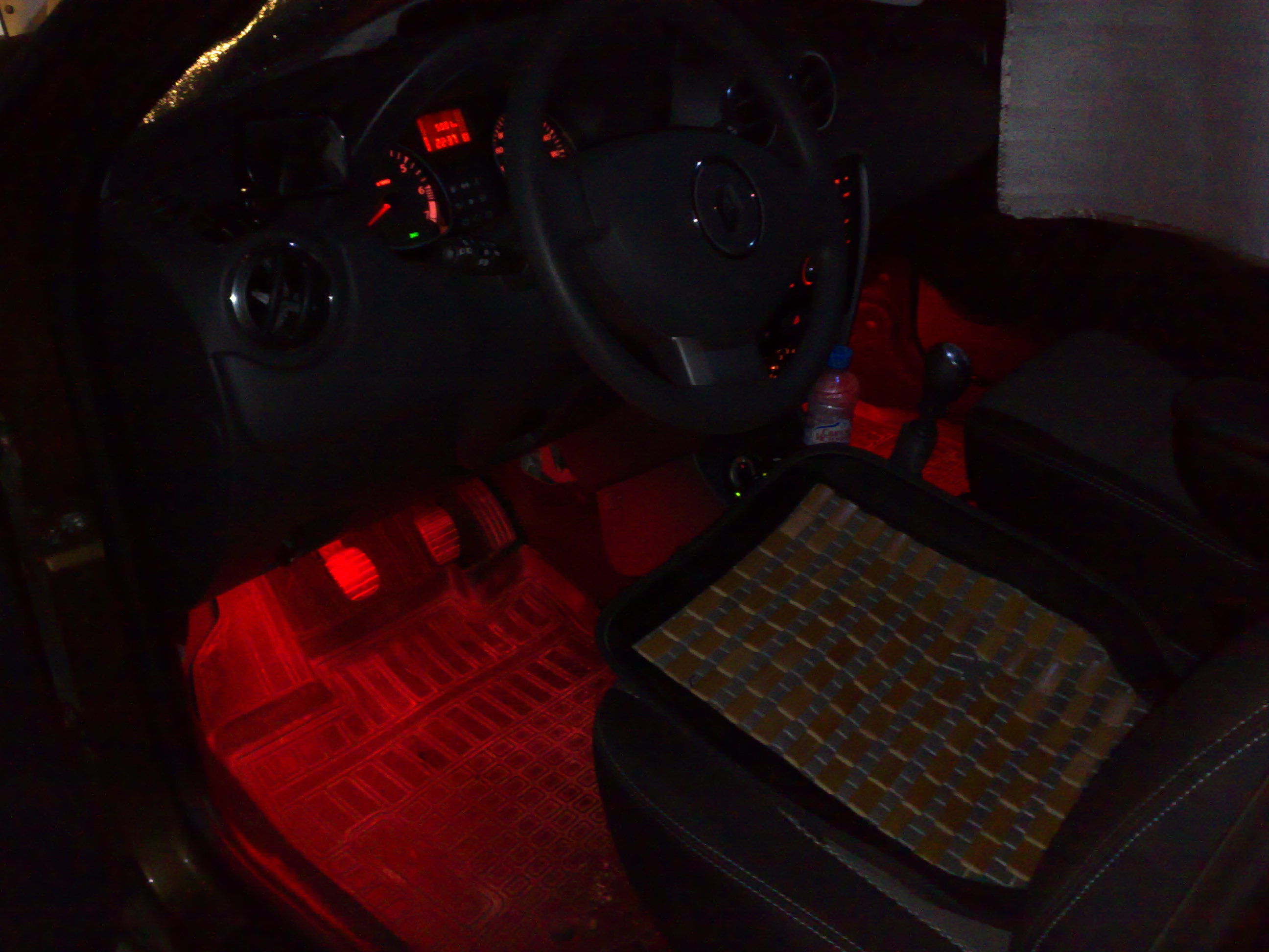 Так как у меня все в салоне в красных тонах, решил сделать в ноги подсветку. Купил 60 см светодиодной ленты, красные с.диоды и два коннектора для подсоединения, без пайки. Приклеил на край торпеды внизу. Питание взял от плафона салона, работает от открытия дверей.