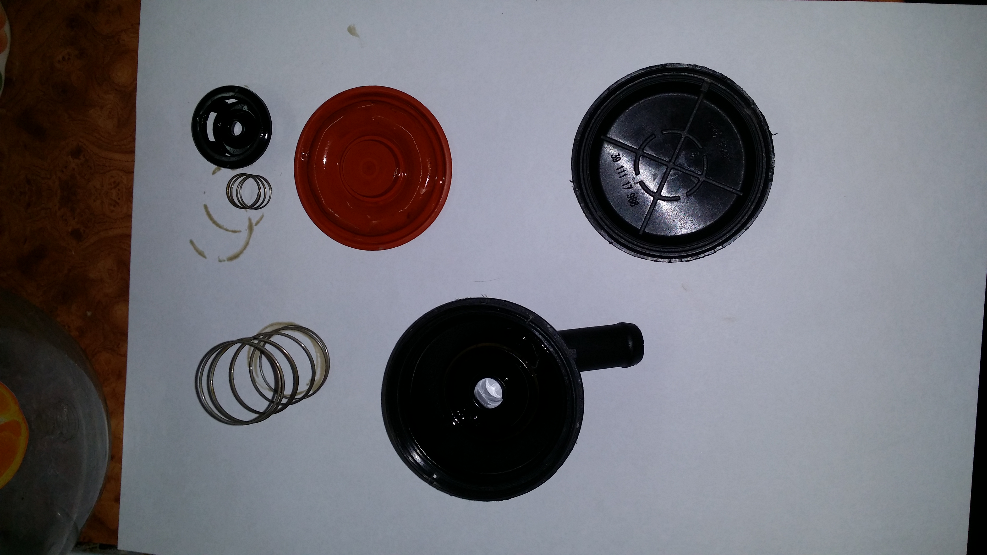 РАЗОБРАЛ: мембрана целая, как новая, все чисто, чуть-чуть масла. Промыл все спиртом 96% , протер, собрал и поставил на место )ВЫВОД: причина звука НЕ в состоянии клапана и мембраны в нем! Возможно, конечно, какой то дефект в материале мембраны. Если был косяк в сборке (хотя там все просто, сложно накосячить) — я все "перебрал". UPD: сегодня с утра завел, поднял обороты до 1100-1500. Ни на месте, ни в начале движения никаких звуков нет. Правда, температура уже +4 у нас… В общем, буду дальше наблюдать… Может и помогла разборка-чистка- сборка клапана (как для Калаша прям…) |