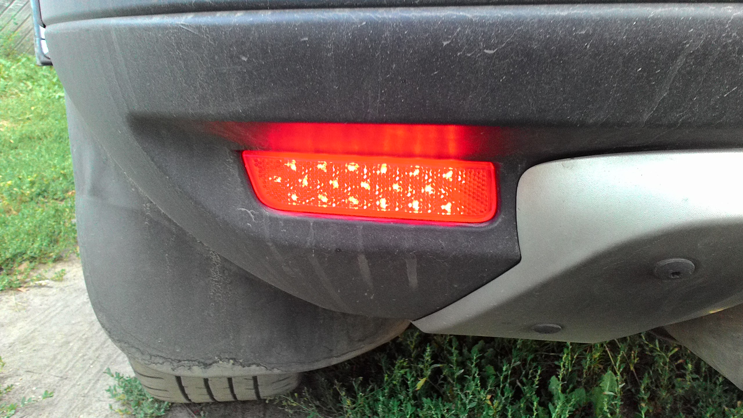 Из катафотов сделал дополнительный стоп. В три ряда по 2 секции красной светодиодной ленты. Подсоединял через драйвер к правому фонарю в нише домкрата.