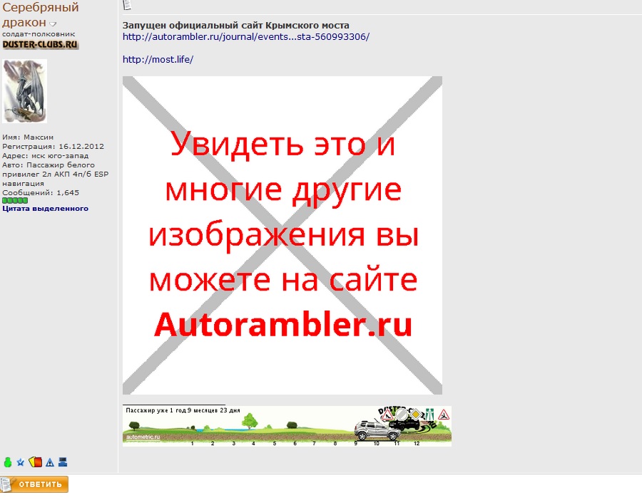 Ну, ладно это уже технические детали, которые большинству неинтересны. Факт в том, что "картинки" с autorambler на форуме отображаться не будут.