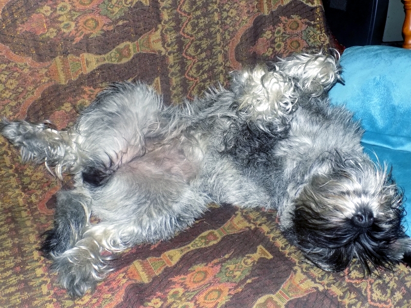 Вот так мы любим спать на Серёжином диване. В честь дня рождения постриглись. |