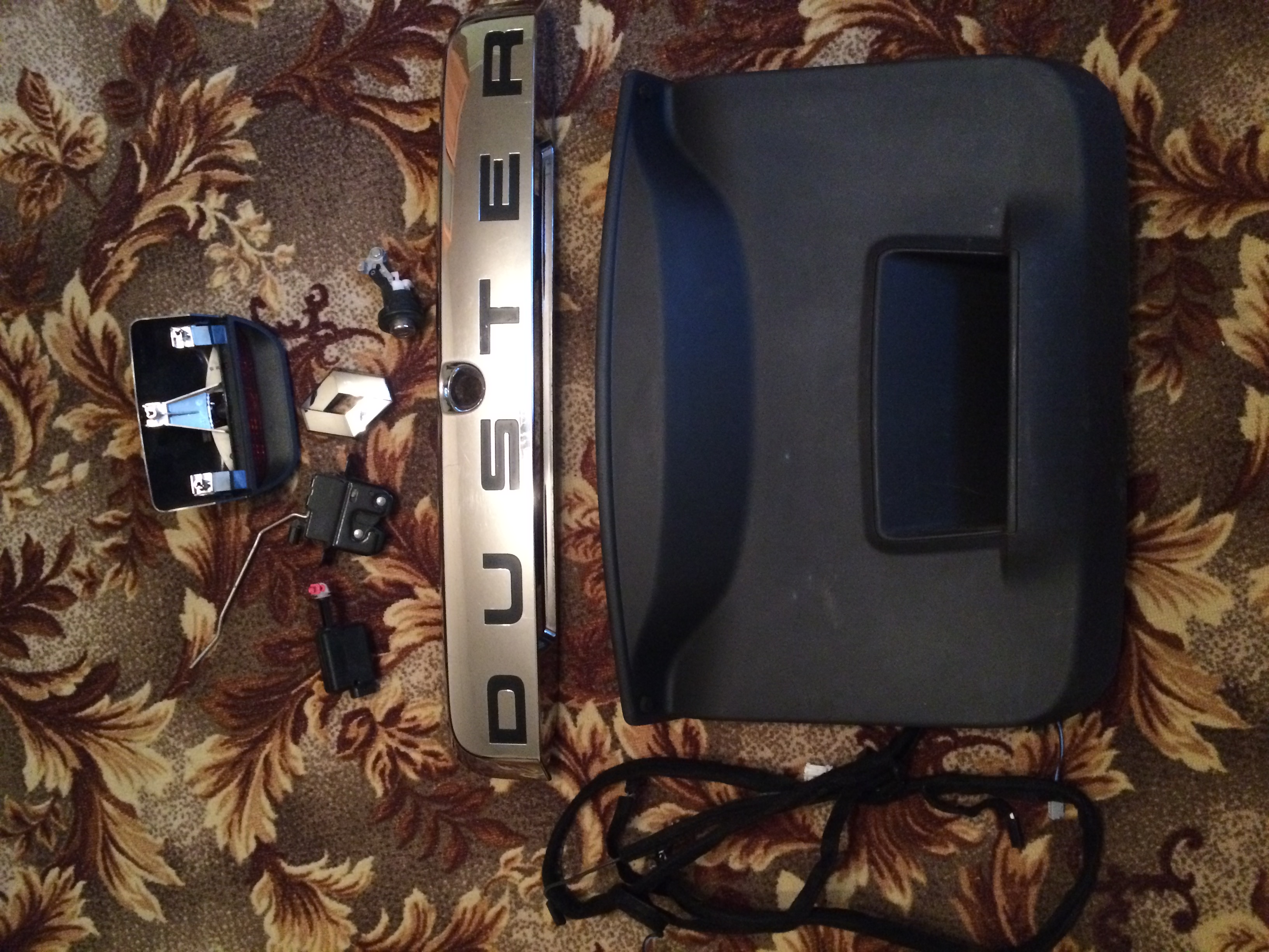 Продам мелочь оставшуюся от крышки багажника RENAULT DUSTER хром накладку задней двери в отличном состоянии арт/ 848106714R, и прочую мелочь: обшивку арт. 909000175R , замок/кнопку/активатор, стоп сигнал арт. 265900027R, в нагрузку отдам: знак рено, проводку крышки багажника, все оригинал, Оправлю ТК.
