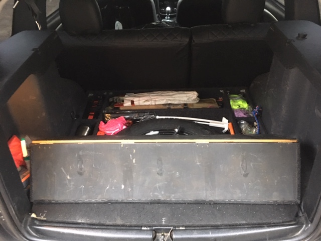 dg972, Я себе сделал три года назад такой же. Прекрасно уложены два туристических топора (лезвиями вниз) две сапёрные лопатки, ручная складная пила, ручная лебёдка рычажного типа на 2 тонны, кружка с горелкой и газовым баллончиком внутри, НЗ типа сухпай и ещё куча всяких полезностей. Единственное различие: крышка моего полика открывается всего на три части, а не как у них. Вокруг запаски и внутри неё тоже уложены всякие полезности как то: Сумочка в которой находится стропа динамическая с шаклами, ветошь,перчатки, воронка и т. д. и т. п.