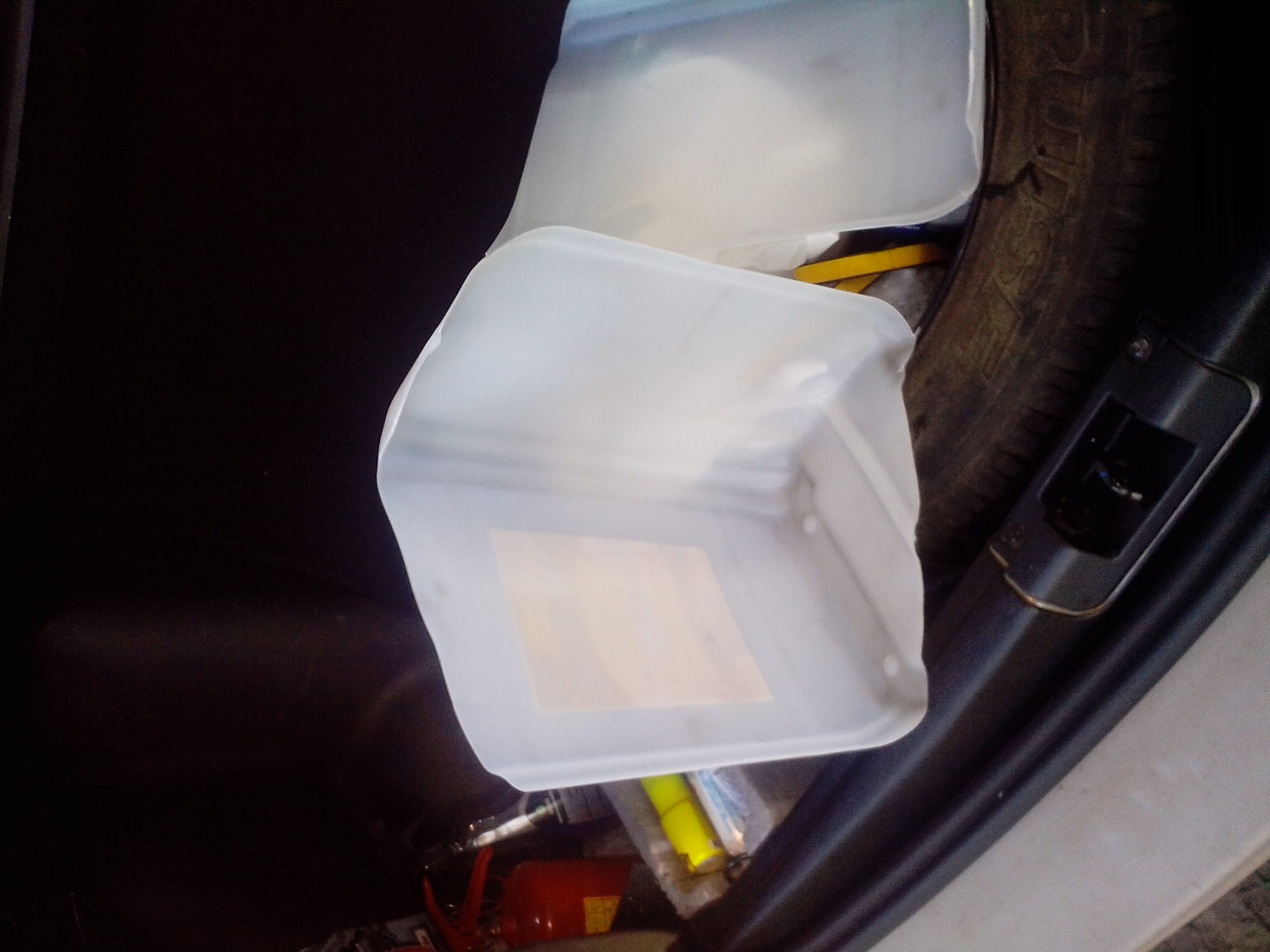 Вот посмотрел я на запаску,а точнее на пару треугольных пустышек около нее,и придумал из канистры сделать пару боксиков под разную валяющуюся мелочевку.Было бы место,что положить найдем. Тут остатки карпета нашел,ну и до кучи примастырил и его. Края пластика клеил на клеевой пистолет(для пластмассы ПВД,светлые стержни). ![]() Сейчас клей сохнет,утром воткну. ![]() (фоткал на телефон)