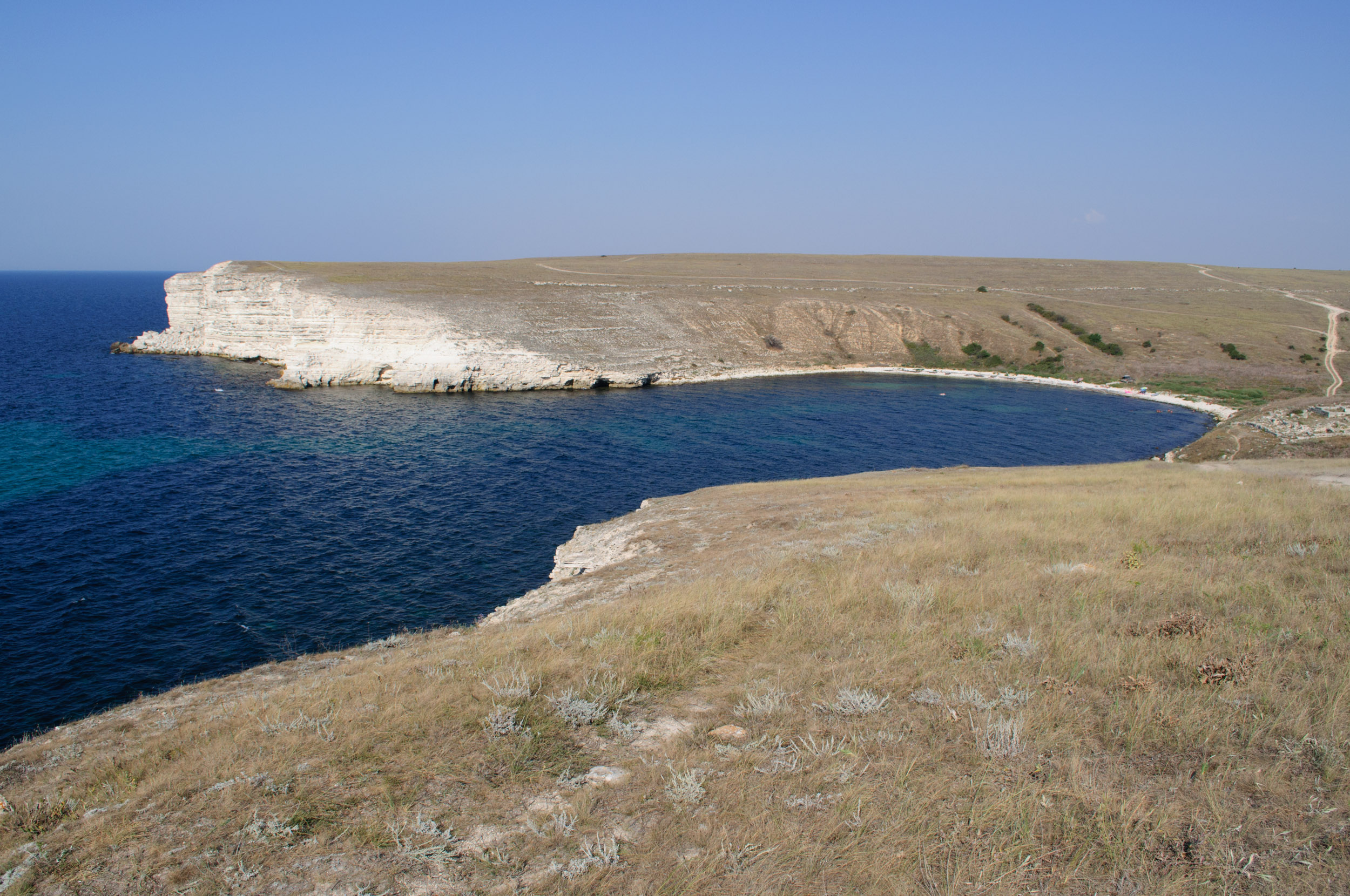 Большой Кастель. Поляну не видно, но я спустился получается прям в бухту со стороны развалин городища. Вроде как за мной нива приехала с эклогами заповедника, но поняв что я спустился по незнанию и в бухте не задержался, даже разговора не было. Запаковался на полянке и пошли купаться=) Фотографии поляны нет, но есть фото других бухт: |