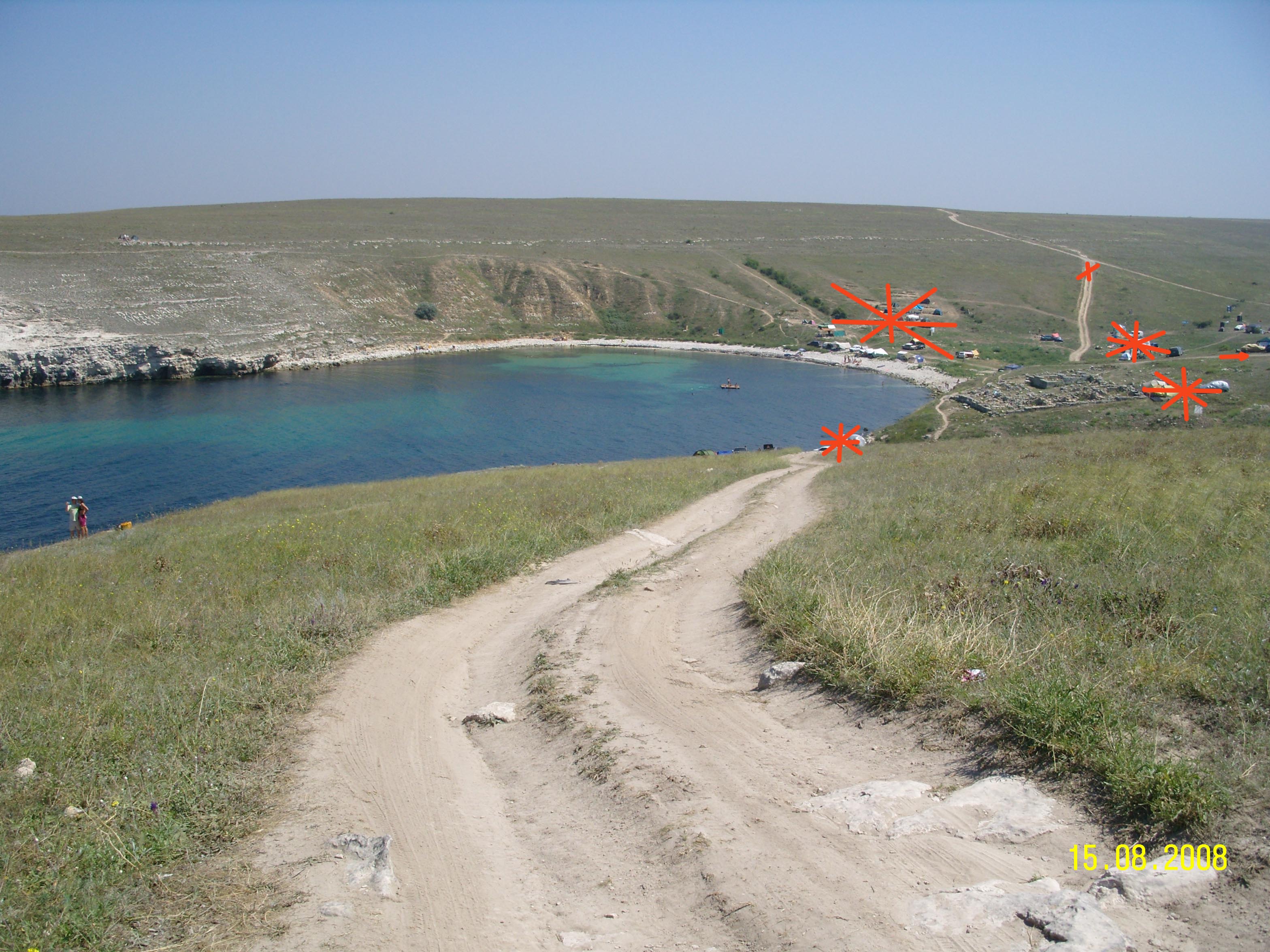 Машин вблизи бухты нет. Поляна получается чуть за кадром справа. Там установлен туалет, мусорный контейнер и как-то это место было обозначено в прошлом году, в этом еще цивильней. Получается, где Х стоит столб запрещающий проезд. Я поднялся к столбу другой дорогой, которая идет от поляны, ее видно, она пересекается с той что закрыта "Х". Остальные столбы стоят за кадром. Машин у воды нет, все стоят в кемпинге, стрелкой указал направление, там не далеко. Вся эта область поросла кустарником и травой, машин теперь нет, звездочкой перечеркнул их наличие=) Кстати, вот на этой фотке видно мерседес с московскими номера, его выгнали пока я передевал плавки на полянке. А если присмотреться то на дороге с подъемом виден знак посередине. Фотографии кликабельны=) Последний раз редактировалось Подводник; 06.08.2018 в 13:28. |