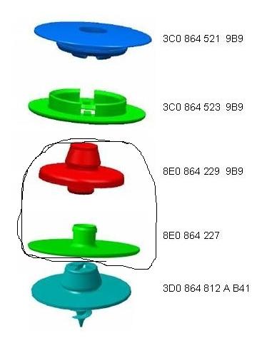 Заклёпка расщелкивыется на две части и вынимается.У меня оригинальная через неделю с ковриком сниматься начала,а платить за оригинальные две половинки 200р-это сильно.А саморез -это у кого заклёпок нет на ковролине,на других авто например.