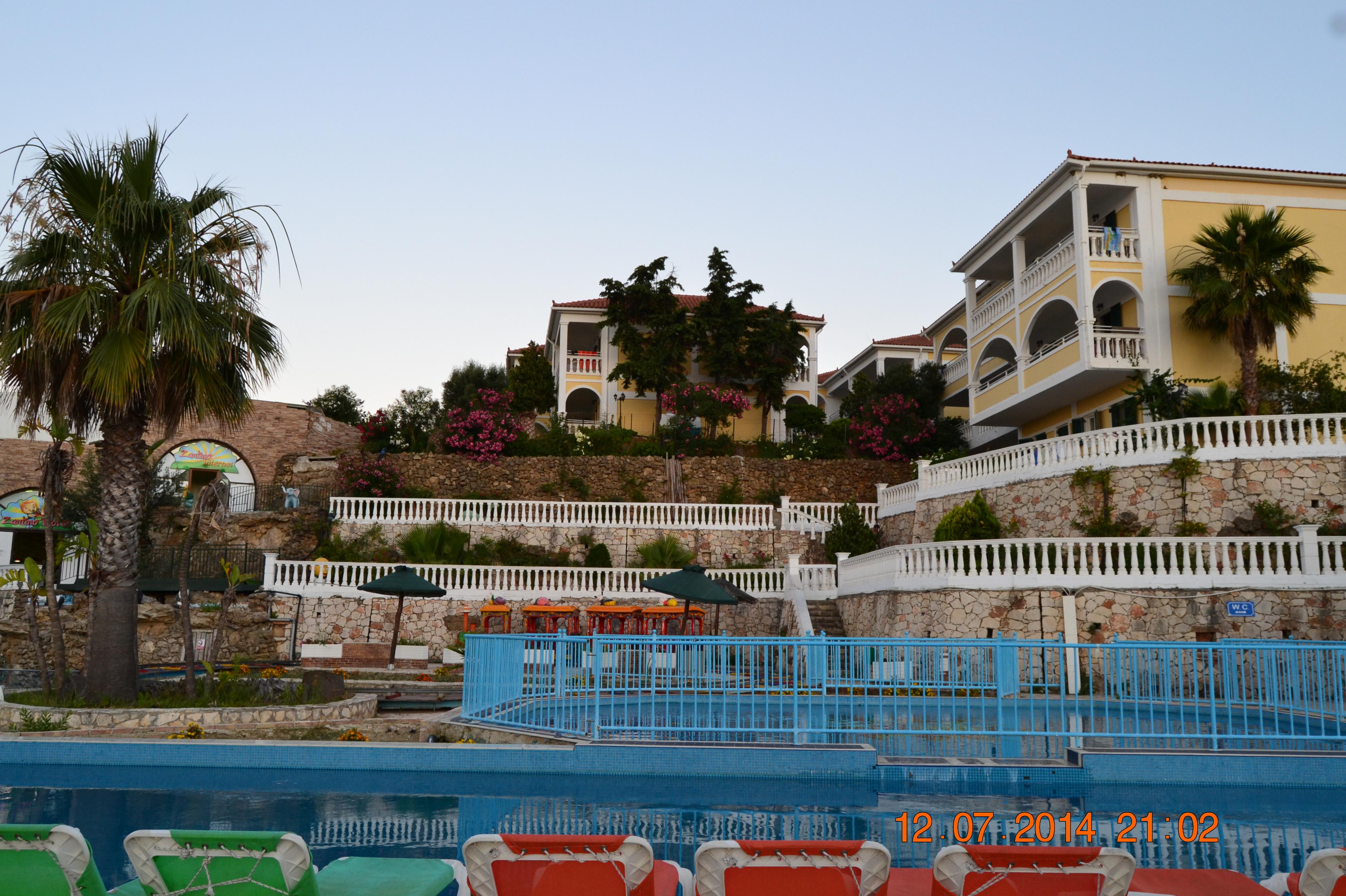 Хочу поделиться впечатлениями об отдыхе в этом отеле. Благодаря туроператору «Лабиринт», авиакомпании Оренэйр и замечательным девчонкам из турагентства «Магия Путешествий» 9 июля около 8 вечера мы оказались в этом отеле. Размещение прошло без особых задержек. Заселили нас в двухкомнатный Family Suite с потрясающим видом на море с высокого обрыва, на котором стоял наш корпус. Начну обо всем по порядку – - Номер. Двухкомнатный, 3 кровати, плоский телек с одним русским (плохо показывающим) каналом, душ-ванная-туалет, несколько тумбочек и огромный встроенный шкаф. Балкон со столиком и плетеной мебелью. Все не новое, но исправное. Уборка каждый день – уборщица долго не могла привыкнуть к тому, что после обеда мы спим в номере, а не уходим загорать, как ей бы хотелось…. - Питание. Еда была самая разнообразная на любой вкус! И мясо разных видов, и птица и рыба, и овощи-фрукты, а также мороженное и напитки в неограниченном количестве с 7 до 23ч. - Территория. Территория большая и зеленая с множеством деревьев и кустарников! Комплекс отелей (3 штуки) находится на горе, а пляж, соответственно по ним. Попасть туда можно несколькими путями: а) на фуникулере, что долго (приходится ждать пока он «остынет» или наберется необходимое количество отдыхающих); б) на лифте, а потом три пролета по лестнице (в низ хорошо, а вот наоборот не очень); в) по лестнице (муторно) г) и, наконец самый нормальный – выйти из ворот отеля, повернуть направо и пойти в низ под небольшим уклоном (и в верх и в низ нормально и не сильно утомительно, к тому же по пути можно покормить рыб, коих в расположенном у дороги пруду огромное количество, см фото). Вообще в отеле много лестниц – постоянно приходится куда либо подниматься или спускаться – первое время безумно утомляло, потом привыкаешь. Намеренно опускаю описание бассейнов т.к. не приемлю отдых у лужи с хлоркой категорически. - Пляж. Песочный, море долго не глубокое и прозрачное с маленькими рыбками. Шезлонги платные. Есть в начале пляжа с полтора десятка отельских бесплатных, но, как уже многие поняли, в следствие этого практически постоянно занятыми «дорогими» постояльцами или их полотенцами, тряпками и т.п. Места тут занимают, наверное, с ночи…. пару раз нам удавалось ими воспользоваться…. Экскурсиями от принимающей стороны мы принципиально не пользуемся ввиду их дороговизны и бестолковости, которая заключается в том, что ты платишь только за трансфер до места, а там за вход и так далее плати еще! Зачем это нам надо? Короче, это я клоню к тому, что надо брать машину на прокат! Не советую пользоваться прокатом который предлагают всем желающим на ресепшн – весьма и весьма дорого!!! Мы забронировали авто прямо из дома за пару месяцев до поездки и это нам не стоило ничего! Никаких залогов, платы за бронь и т.п. Списался с ними по элетронке (на русском отлично общаются), после прилета позвонил – подтвердил и в назначенное время у ресепшена нас ждала наша машинка – Тойота Ярис – за неделю - 290 евро. Движок, конечно слабоват – по прямой нормально, в вот только в горку – уже еле-еле, особенно если на кондишене. За неделю на ней искатали 440 километров и стоило это нам 80 евро! Зато везде (почти) побывали сами и когда хотели, а кое-где и не раз (сероводородные и коллагеновые источники Xigi). - Расположение. Отель находится далеко от «цивилизации» так сказать. До б