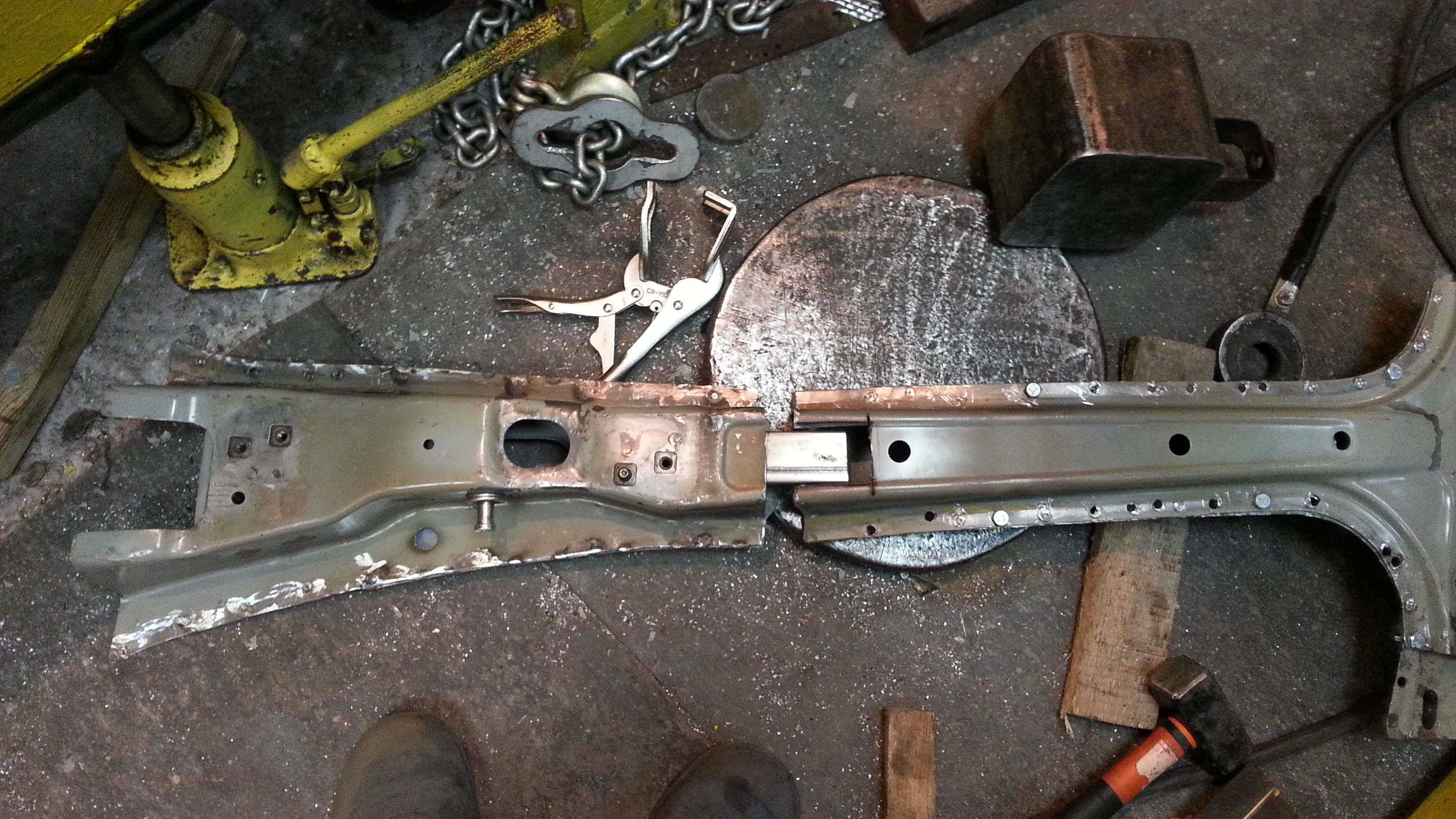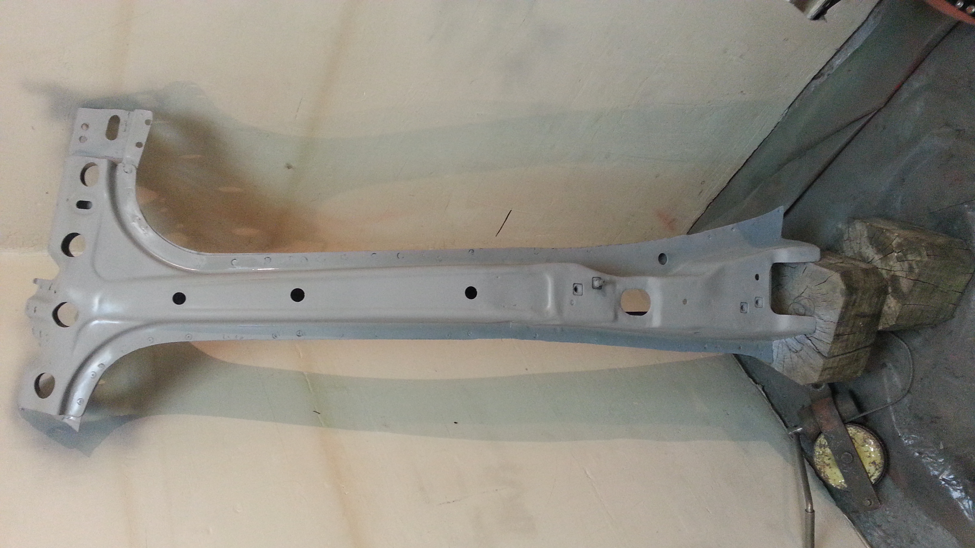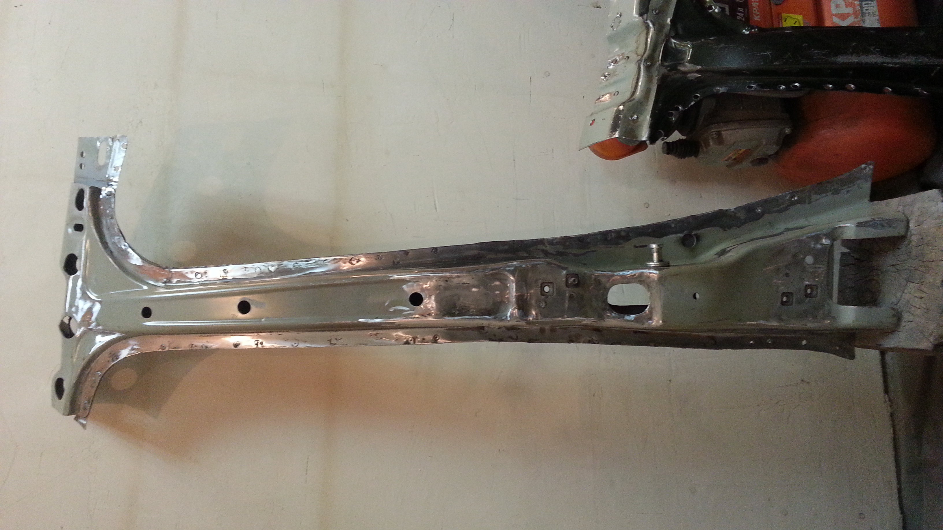 Далее приварил родные,лонжероны, на места ,конечно предварительно обработав кислотным грунтом,а потом акриловым .Получилось вот так.