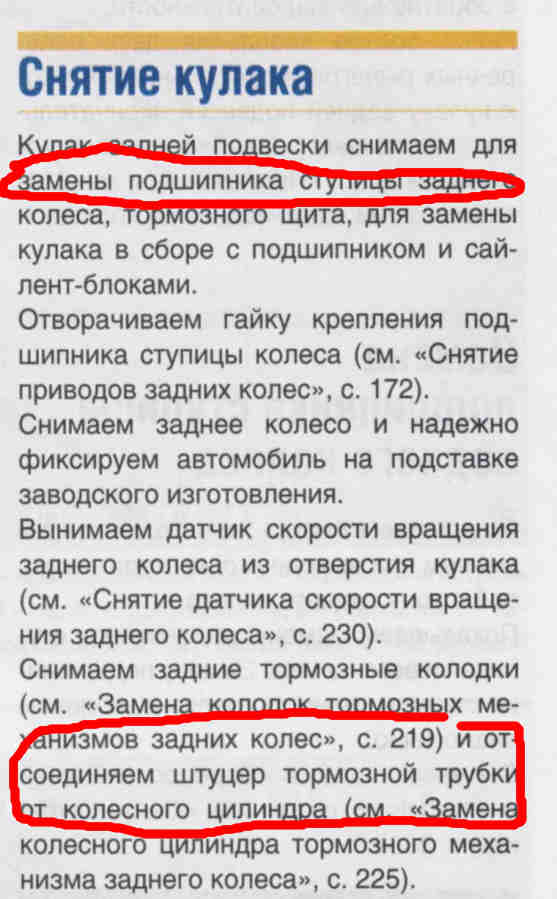 Вопрос есть: Нужно ли откручивать тормозную трубку от цилиндра ( тормозного ) при замене ступичного подшипника? ( левый задний, полный привод ). В этом деле я чайник, но сегодня на ТО меня ( похоже, мне кажется ) пытаются обуть. Машина в сервисе ( Автомир на Дмитровском ). Завтра разбираться. |