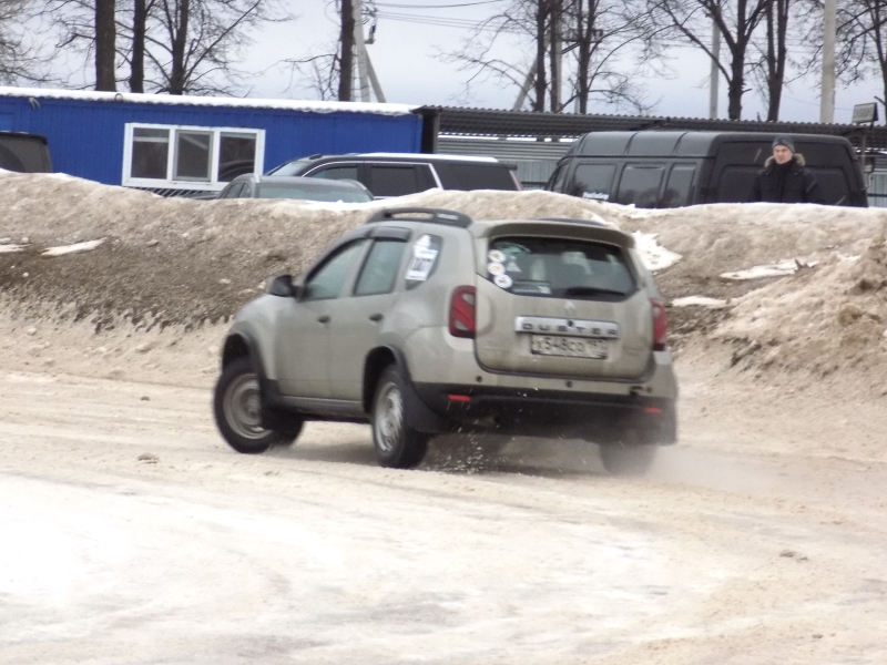 Но навыки определённые есть, ехать в 2ВД как-то не корректно перед участниками записываясь в полный привод, да и на резине липучка всетаки я её эксплуатирую 2й год зима, в 2ВД не стал ставить экспериментов. Пробовал в муфта в Локке, тут тоже есть свои недостатки. По этому остановился и еду на Спринтах в режиме Авто. Теперь приведу отличный пример, чтоб окончательно обьяснить почему и что мешает ехать на Спринтах, справлюсь я с этим или нет покажет время и возможность бывать на такой трассе. Представьте, что вы едете за город и на проселке есть объезд раза в три короче, наступает такая погода перед весенняя, эта объездная дорога имеет небольшую колею которая стала совсем ледяная, вы на заднеприводной машине, заехав на эту дорогу и проехав несколько метров видете что по середине этой дороги положили бетонный блок, но его можно объехать с парава или с лева, но выкручивая руль и нажав на газ, зад толкает автомобиль по прямой на бетонный блок, передок не может зацепиться, чтоб вывернуть в сторону. Тоже самое происходит на крутом повороте на Спринтовой трассе, зад толкает по прямой с вывернутыми колесами, вы скажете можно пройти поворот и сделать занос, как на заднем приводе, да не тут-то было при отпускании газа нет заднего привода весь момент на передке вместе с торможением двигателя, приходиться ждать пока перед зацепится нажимая слегка на газ пока снова не покажется прямая. С одной стороны тут все под контролем и меньше шансов залететь на ледяной бруствер, поэтому я проезжаю аккуратно рядом с бруствером пока не появится прямая, на больших и не крутых поворотах есть свои плюсы и даже прикольно если колеса чуть вывернуты то на это не обращаешь внимания и давишь газ Дастер все равно ускоряется по прямой траектории. Скажете, что можно ехать в режиме Лок, тут есть тоже минус, зад может занести в ненужный момент в прямолинейном движении если заданная прямая траектория резко изменится из-за сцепления под передними и задними колёсами, что неоднократно бывало при резких ускорениях на других Спринтах. Вот перед поворотом иметь бы режим Лок для хорошего заноса, но крутилка находится долеко, что не удобно и нужна тренировка или отдельная кнопка и тренировка тоже. Плюс самоблоков автоматически срабатывают на разгон и полный контроль управления Дастером при нажатии газа, минус отключаемый зад при сбросе газа даже в режиме Лок. Для меня главное по возможности участие в Спринтах, проверять свои возможности и своего автомобиля среди профессионалов РаллиКроссАрена. Для обычного водителя и необычного автомобиля это тоже результат. ![]() ![]()