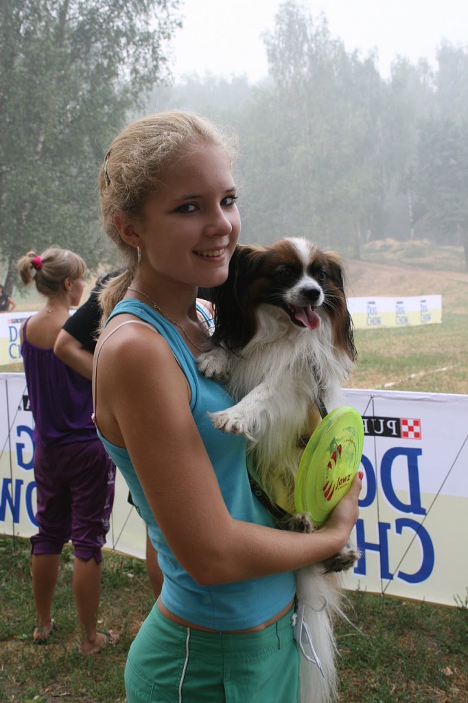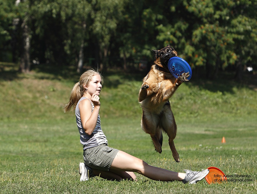 Демократичный спорт для прыгучих собак. Тренироваться можно в любое время года на любой подходящей лужайке. журнал "Если у вас есть собака", 3 номер ![]() Соревнования проводятся трех видов. - Броски на точность: за минуту собака должна поймать диск в отмеченных зонах. - Броски на дальность: у команды есть 3 попытки, засчитывается самый дальний и удачный бросок. - Фризби-фристайл: в течение 2 минут под музыку спортсмен и собака должны показать серию трюков в свободном стиле, завершающихся ловлей дисков. Ну и мои участники и призеры