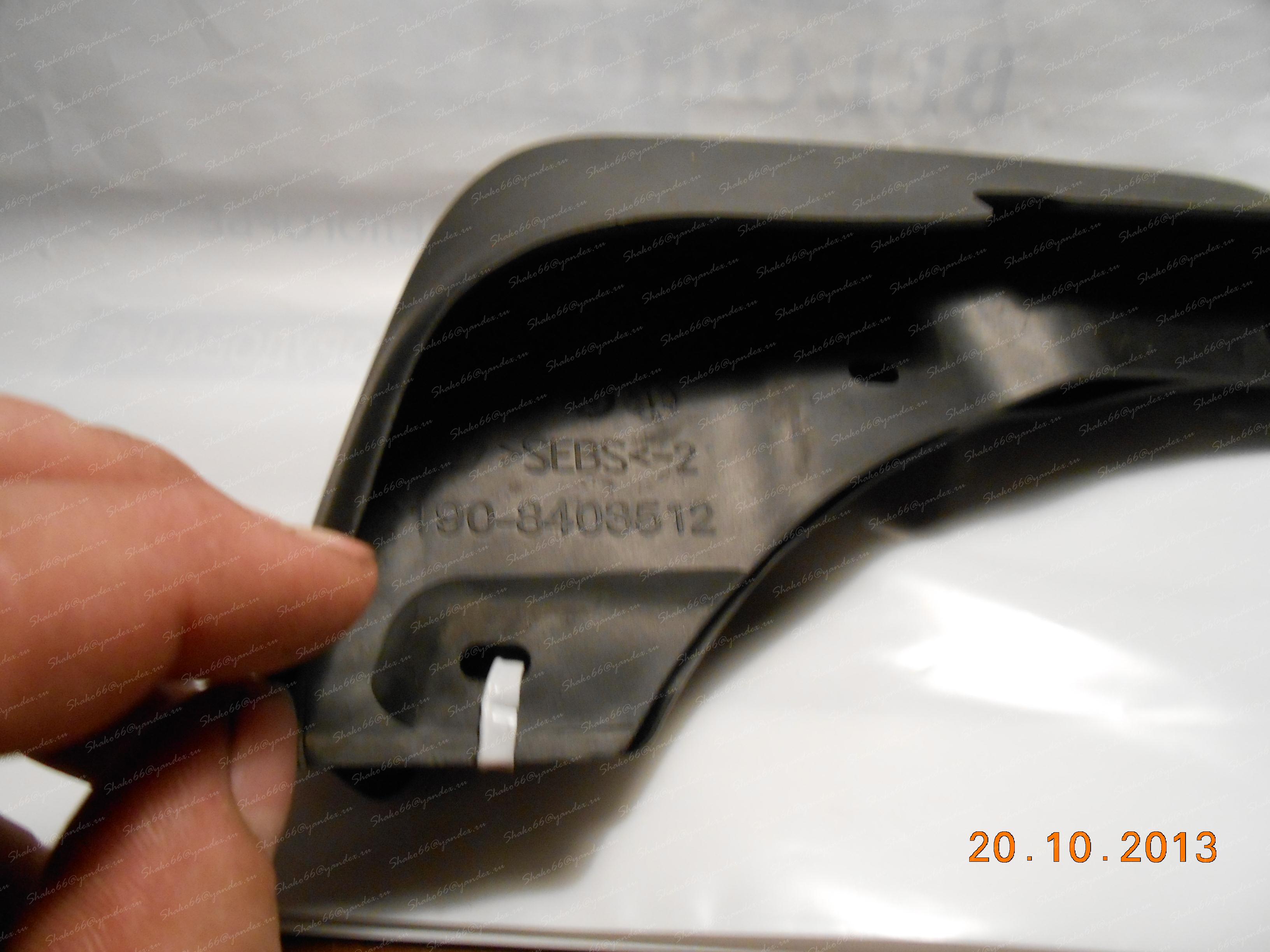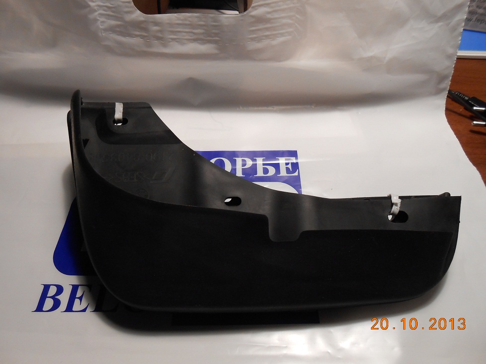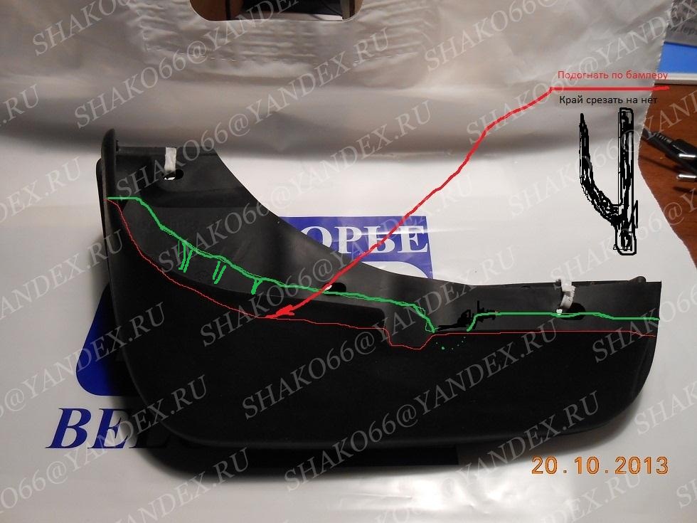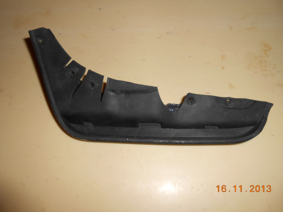 Брызговики от Гранды или Приоры, брал на рынке по виду. Искать помягче и аккуратней при примерке, начинает рватся если жесткие. На фото есть номер детали. Вырезать желательно с постоянной подгонкой по месту. Сейчас бы может резал и крепил немного по другому. Крепил саморезами. Испытать пока не получается нет луж. Получиться выложу все и фото.