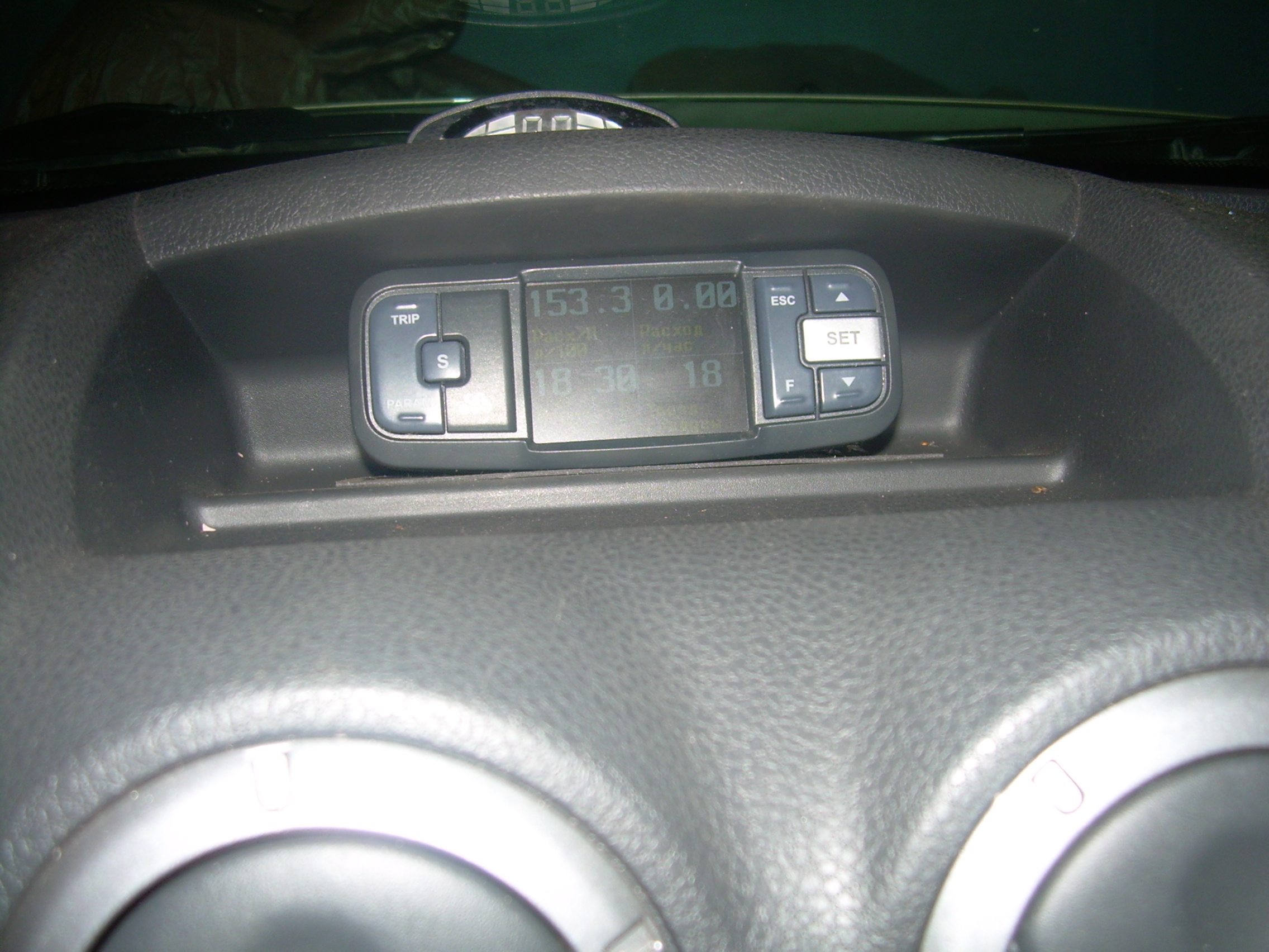 Установил бортовой компьютер мультитроникс tc750 . Показывает 200 параметров, читает и стирает ошибки эбу.У меня сейчас выведено : температура за бортом, мгновенный расход топлива л/100км,средний расход за поездку л/100км ,часы.Датчик температуры разместил в переднем бампере.