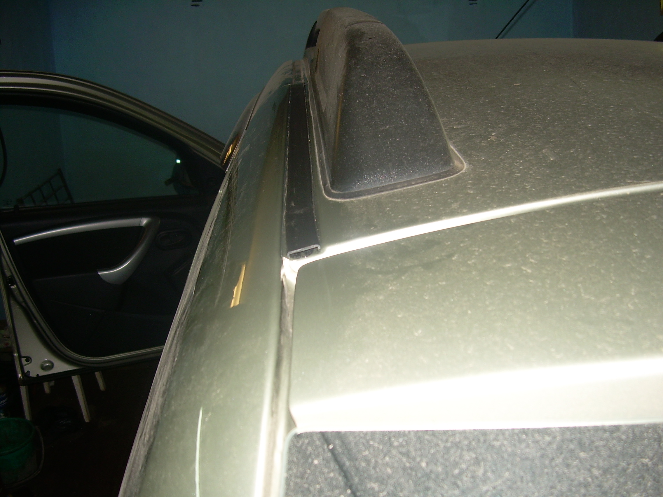 Закрыл стык крыши и заднего крыла.Купил в магазине мебельной фурнитуры окантовку чёрную для дсп шириной 16мм.Необходимо 1.5м.Цена одного метра 15руб. И приклеил,предворительно нарезав в размер, на чёрный автомобильный герметик.Что бы ровно легло, прижал на ночь 4мя сильными магнитиками.Всё обошлось в 100 руб.