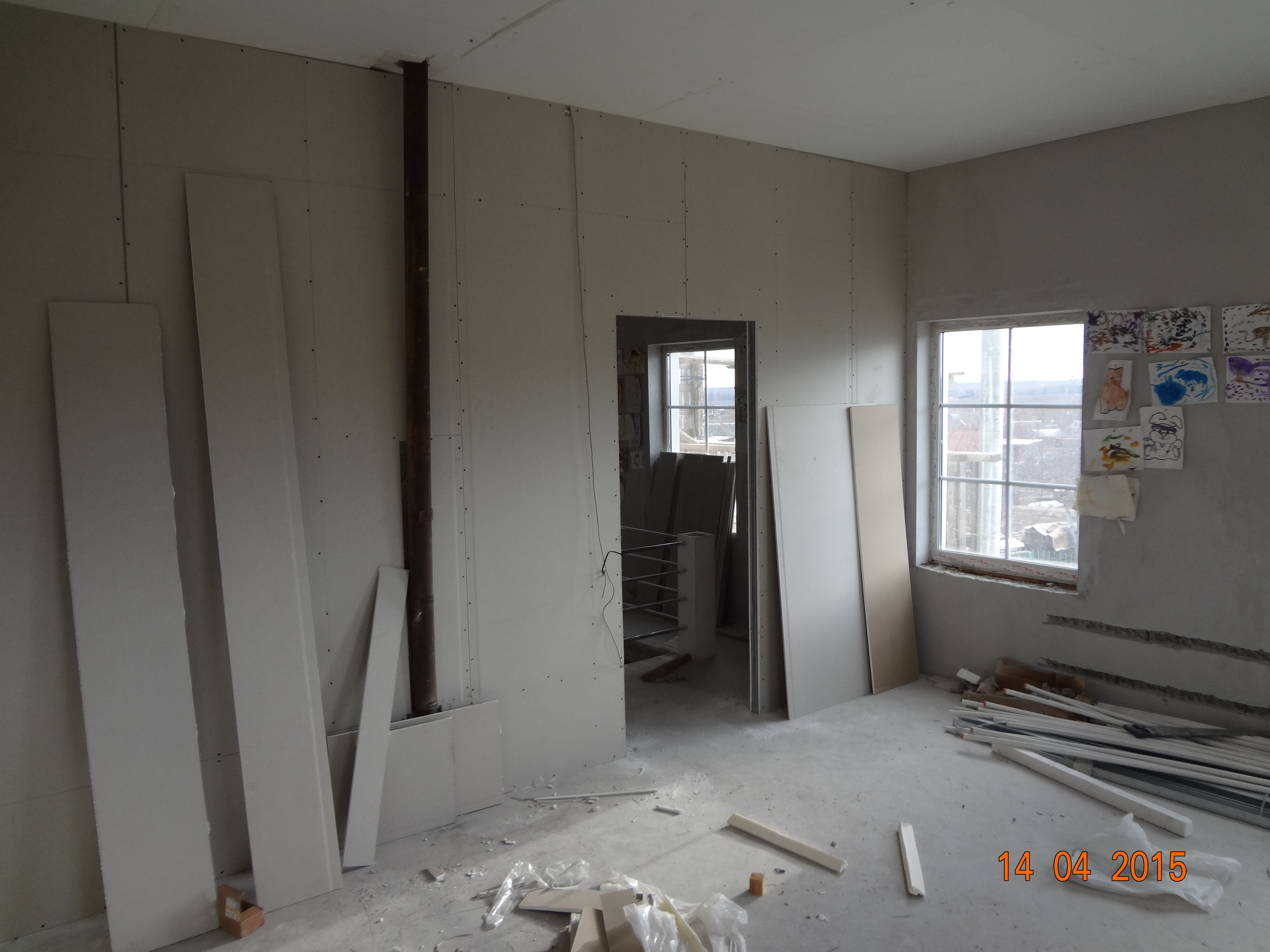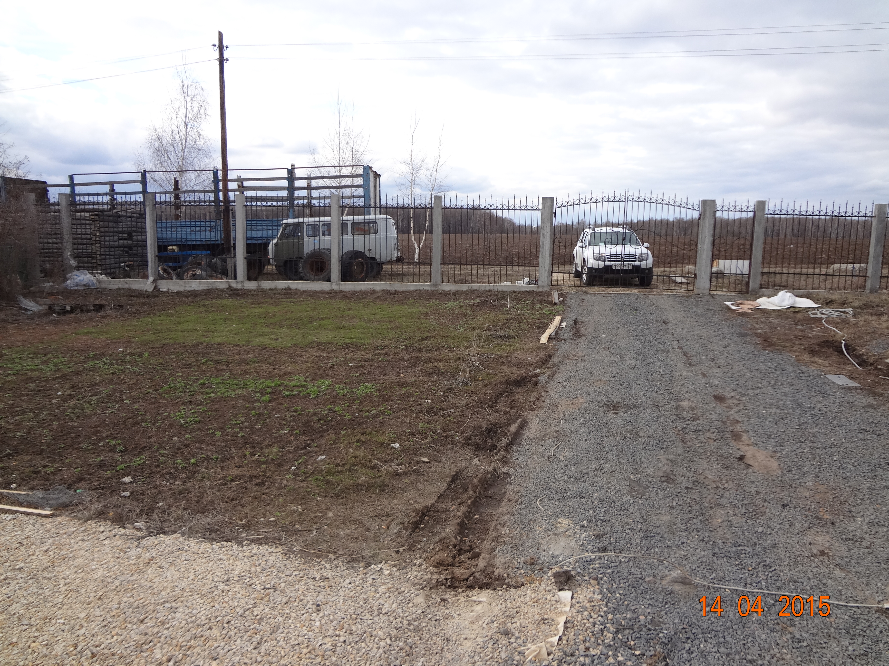 Вот и последние фото, отделка гкл на втором этаже пока идет, осталось потолки. На улице фото фонтана, который облез. Так же распаханный газон в том году и купленная низкорослая трава, которой в этом году и не видно, а покупали самую дорогую, как и зимостойкую. А обычная трава уже зеленеет (маленький кусочек посадили для пробы).