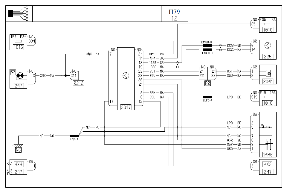 У нас сечение черного и коричневого одинаковое и больше остальных. Скорей всего они идут на бензонасос.