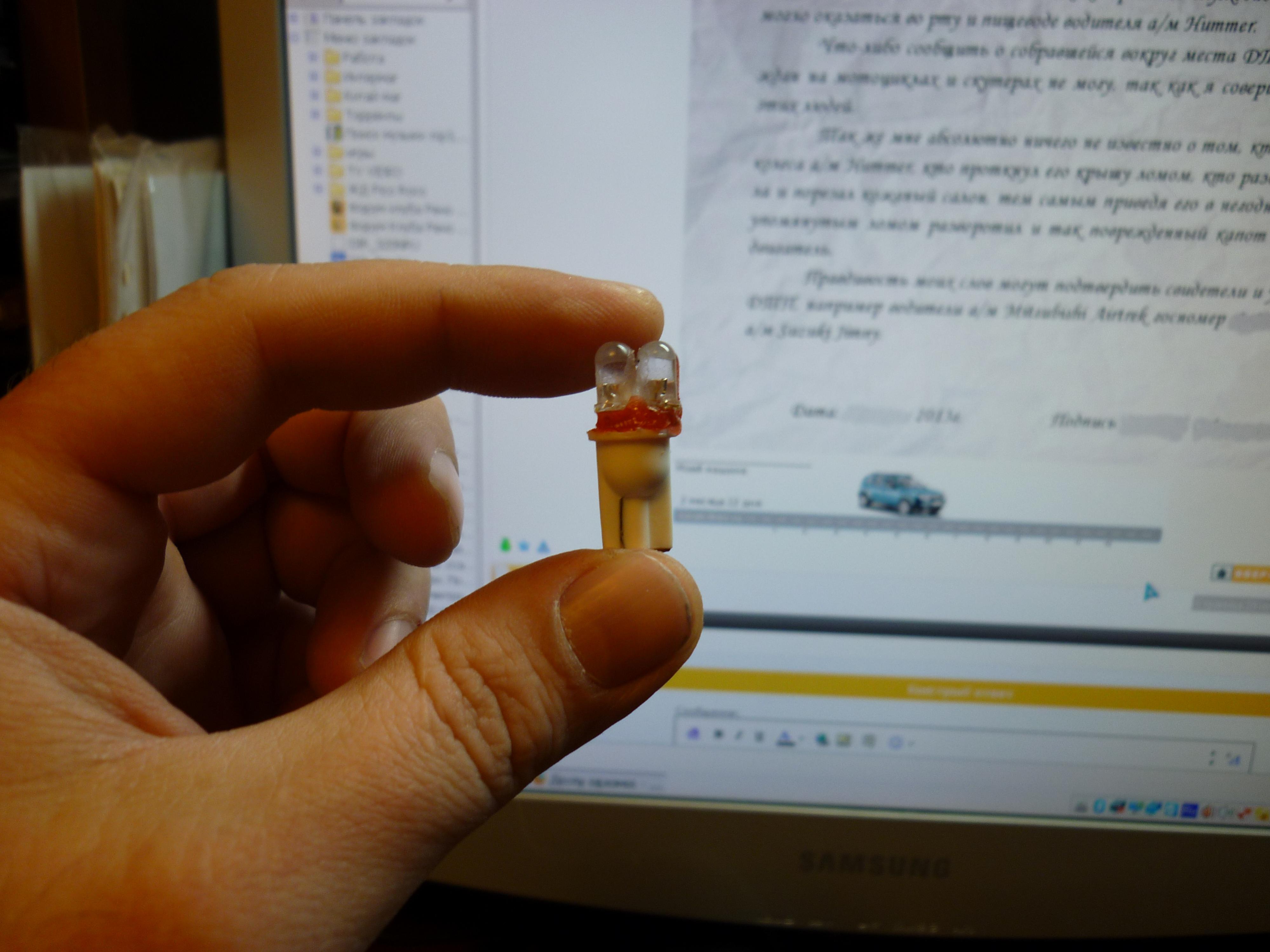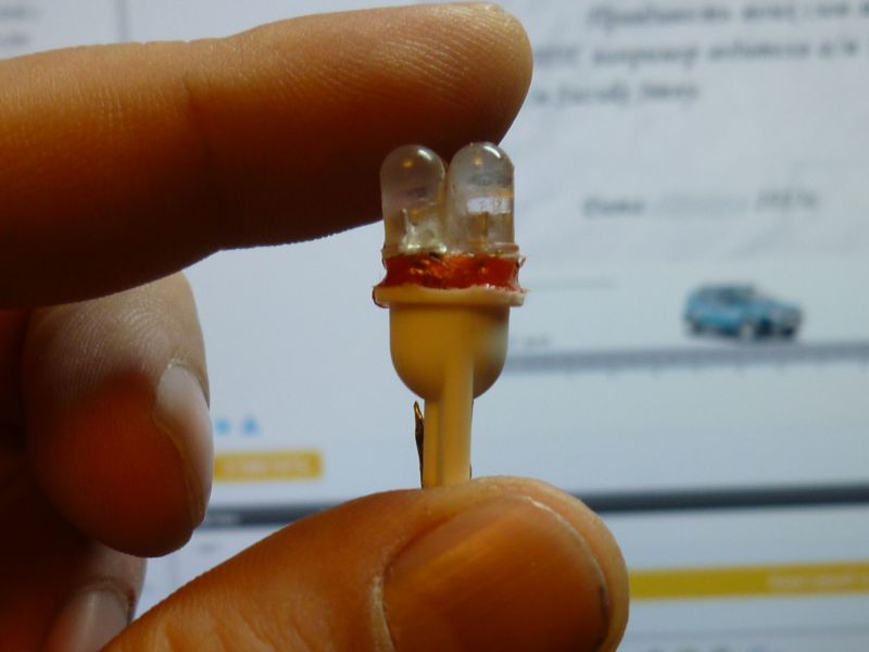 Нашел четыре светодиода белого свечения от зажигалок. Зажигалки умирают а светодиоды живые, вот я их выковыривал и складывал. Обточил напильником корпуса светодиодов, склеил их между собой, распаял последовательно и подключил к БП на 14 Вольт. Светят, конечно, не так сильно, как родные китайские... ![]() Около часа горели, нагрева сильного не было. Сделал выводы и приклеил к цоколю W5W. Вкорячу в плафон освещения салона... ![]()