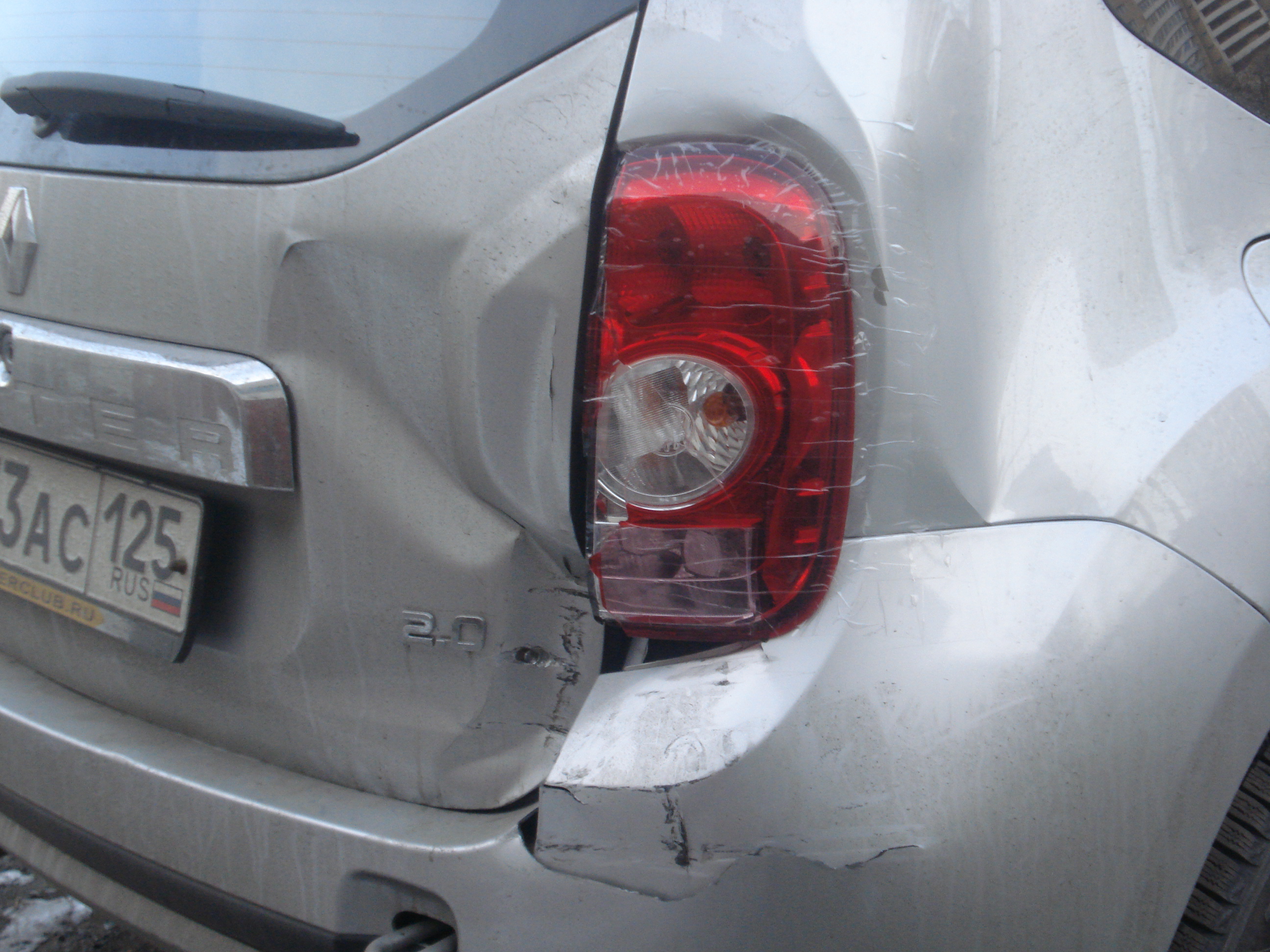 ну вот и меня не "минула чаша сия"Чмокнул моего Дастерка в задок "сухопутный крейсер" с силовым бампером (ему бы лес таким валить! ) аккурат под правый задний фонарь..."Независимый" определил под замену панель заднего правого крыла+бампер+фонарь+порожек пятой двери... Посмотрим, что насчитают... И ведь обидно-то, что ситуация была СОННАЯ!! - я остановился вслед за пропускающим второстепенный поток - а этот лесоруб решил, что я буду просто медленно ползти вперёд (ситуация вполне типичная для этого перекрёстка), решил обойти меня справа - и зевнул, разглядывая, кто там ЕГО справа объезжает. Машина на ходу, задняя калитка открывается, даже стекло фонаря наклеил скотчем на место - не сразу и внимание обратишь, что он разбит - но всё равно гадостно как-то... Щас с Росгосужасом дело иметь... Аллах ведает, что насчитают - а по Exist'у бампер+фонарь+задняя дверь - уже за 50 тыр выскочили... плюс стойка с порожком, да работа... А главное - ВРЕМЯ!!!