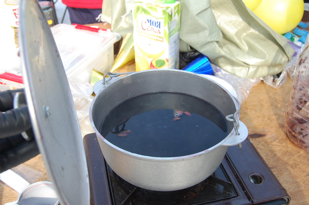 виноградный сок + виноградно-яблочный сок (вынужденно, т.к. при покупке 2й партии сока в перекрестке не оказалось 100% виноградного сока , а "нектар" покупать не хотелось)приправа для глинтвейна - http://www.santamaria.ru/cat-298/cat...article_id-113 ![]() 1 пакетик на бутылку или литровый пакет вина, но т.к. делал на соке и много сразу - чуть-чуть бодяжил 2 пакета на ~3 литра сока. Ограничение было по размеру кастрюль.Сок в кастрюлю, приправы в кастрюлю, кастрюлю на плиту и погреть до горячего состояния, но не кипятить. Потом дать настояться часок хотя бы. Можно употреблять ![]() Процесс приготовления и первая партия ( 2 кастрюли по 3л ): На встрече только разогревали и пили (если у кого-нить есть фото котелка в мангале, то выложите плиз! )