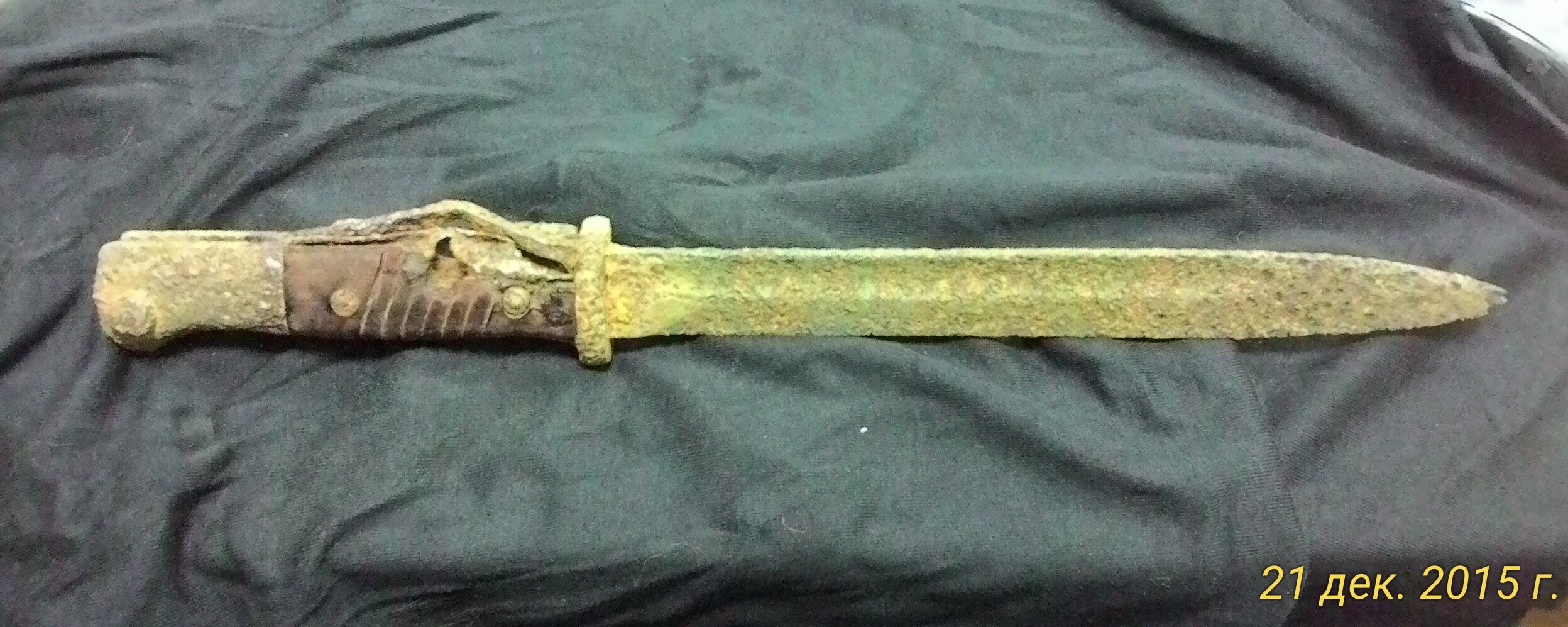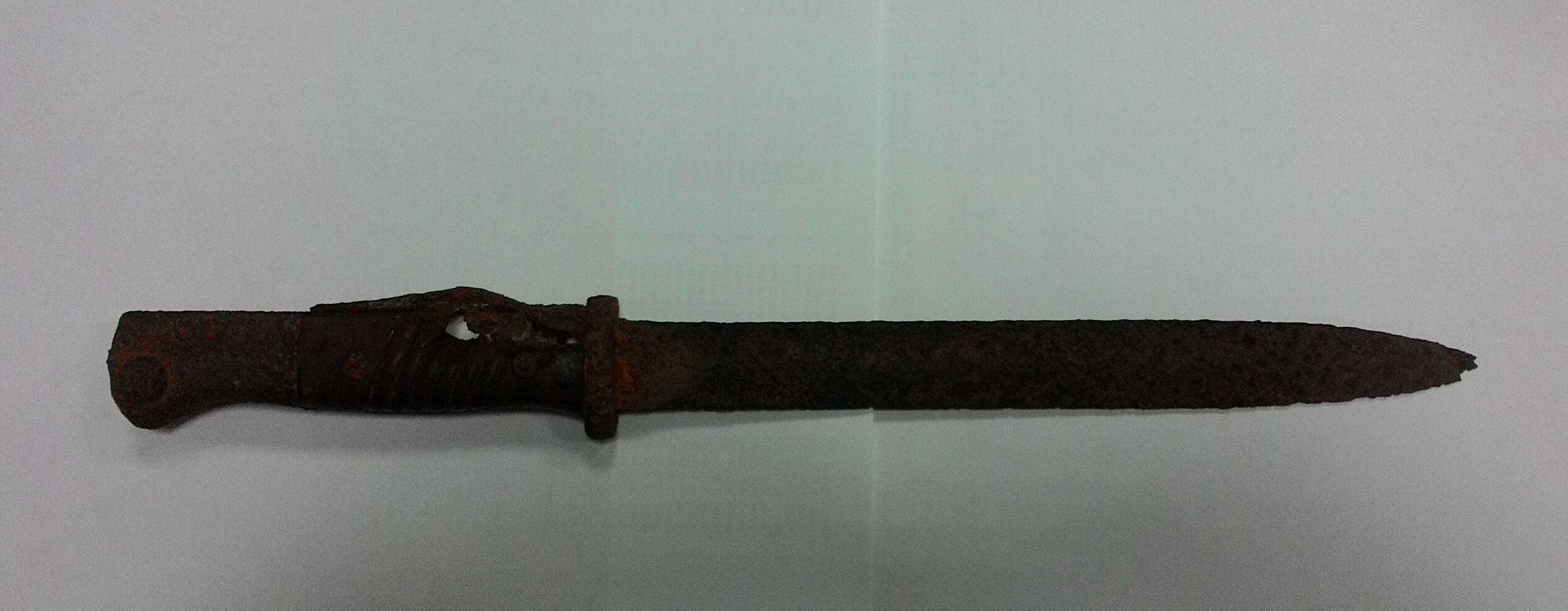 Есть еще один такой штык в лучшем сохране, но убитый какими-то дятлами, сточили, козлы, металл не там где надо. Буду в чо-нибудь переделывать, типа кортик, пика или нож егеря, не решил еще. Металл там от Крупа знатный.
