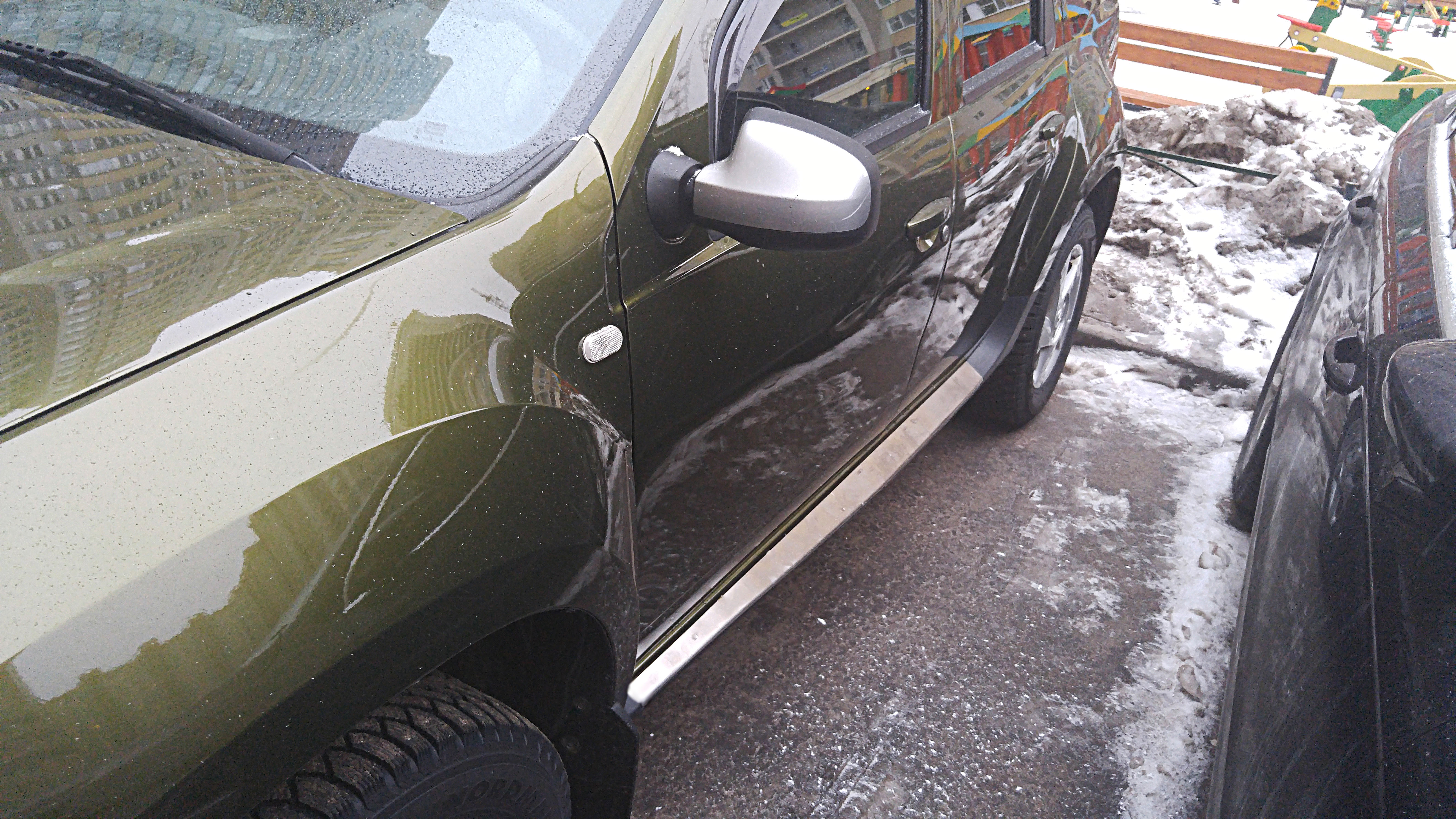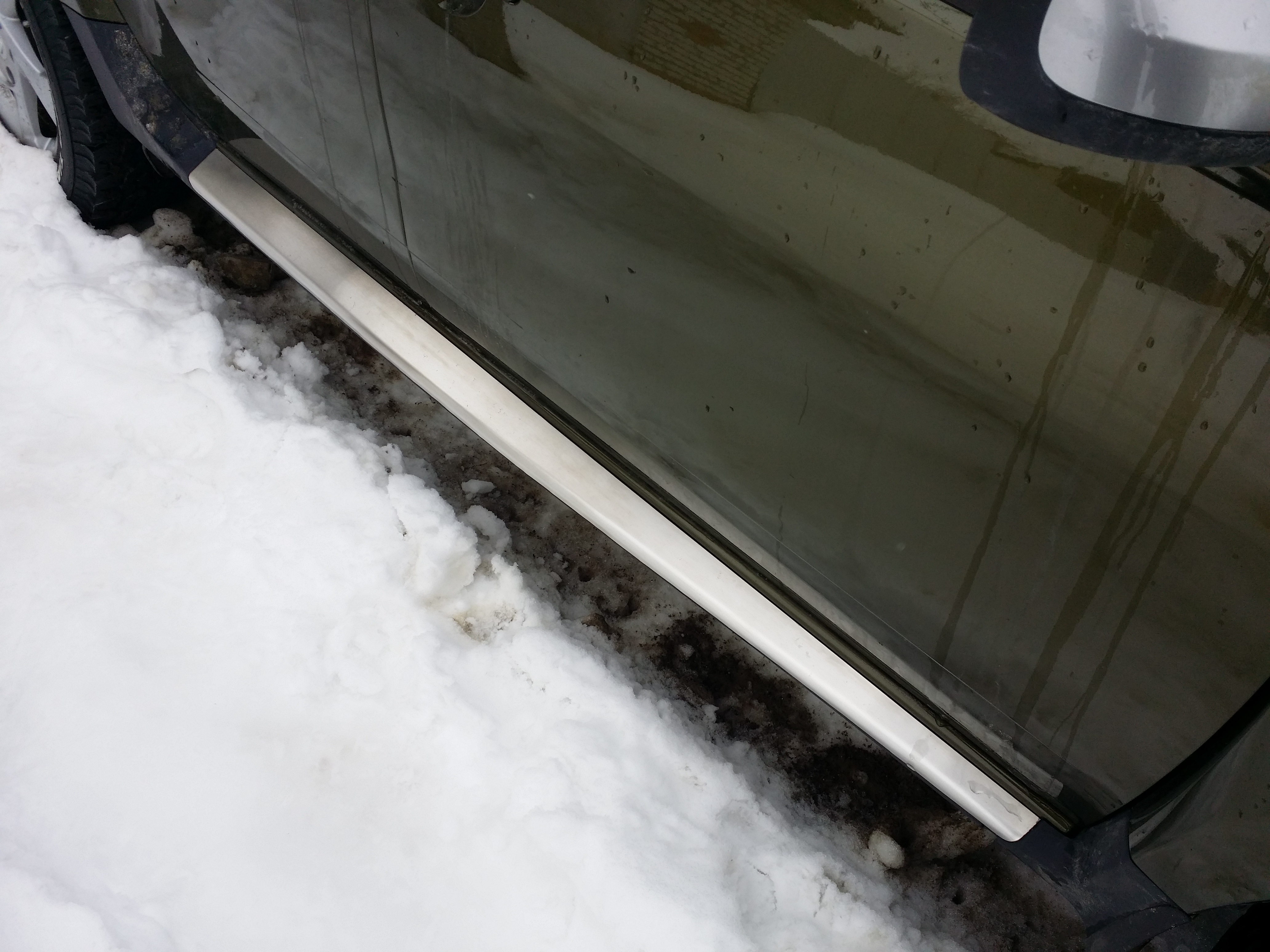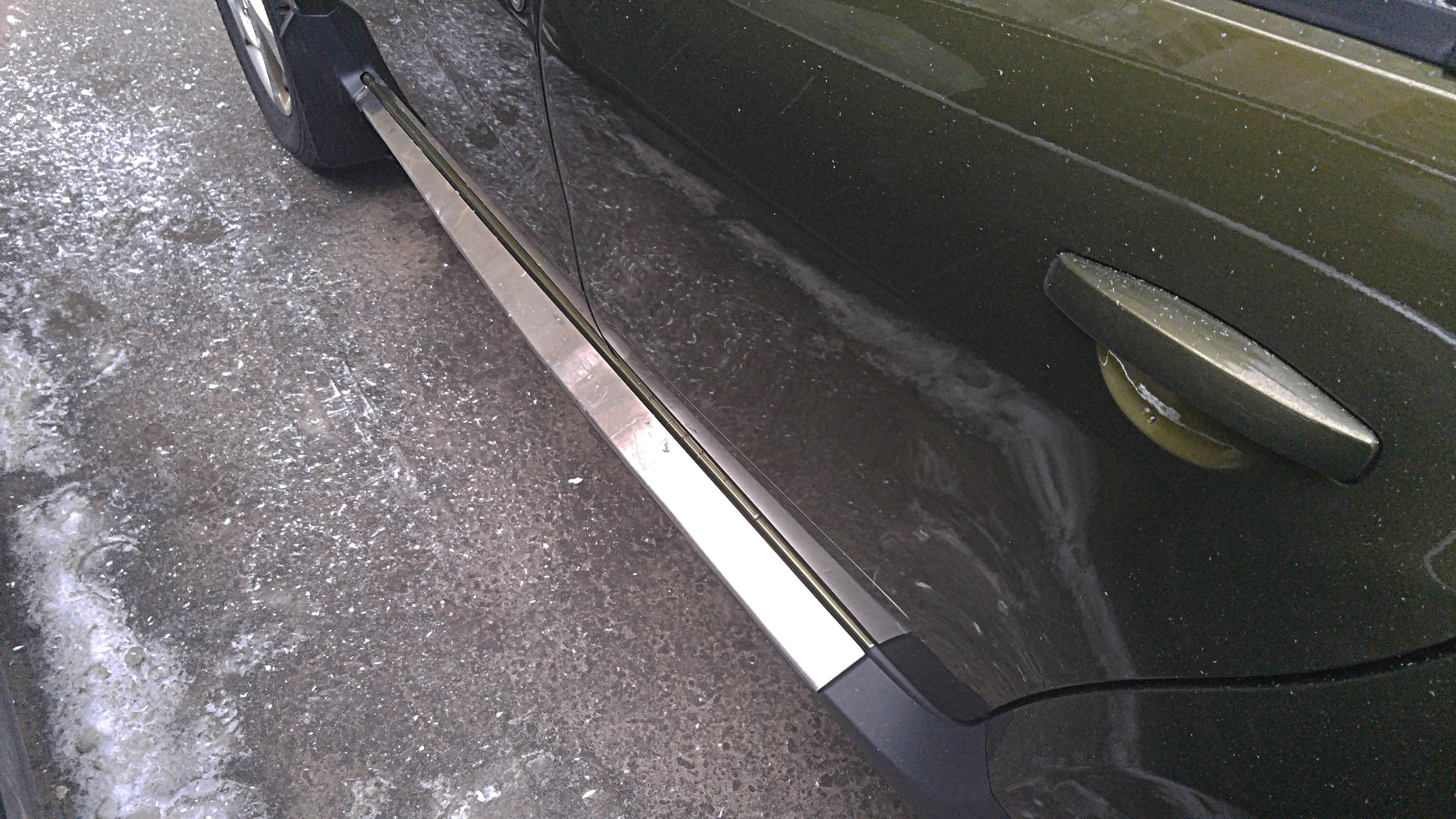 Нахожусь в процессе установки/приклеиваания накладок. Отмыл сначала пороги перед снятием, примерил по месту (вроде все как надо садиться), снял штатные накладки, помыл их еще изнутри. Кстати грязи там под ними хватает, скажу я Вам... Приготовил место у себя в офисе (бывший сарай) для инсталяции...