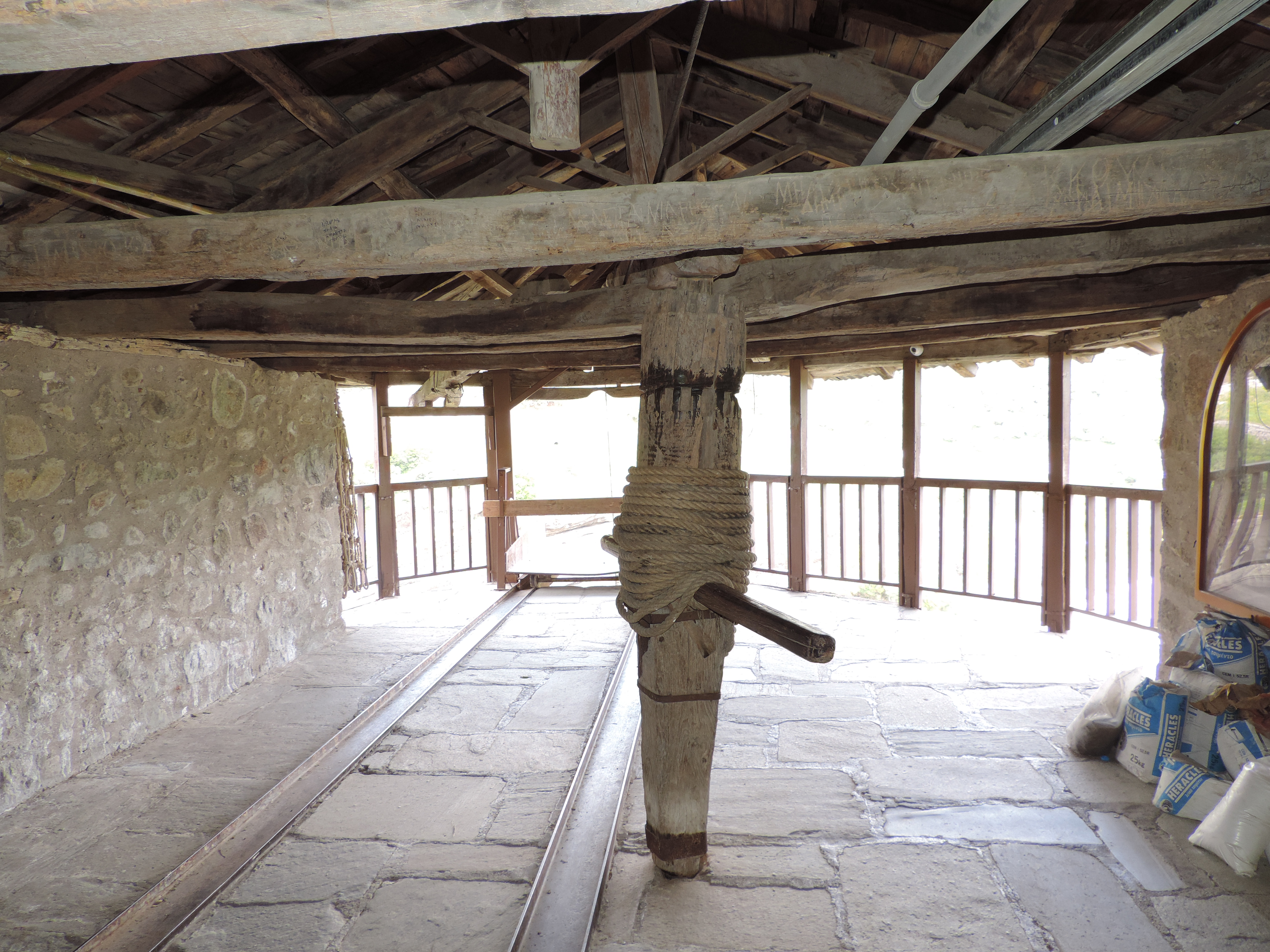 Веревочные лестницы сейчас не используются, а висячая сетка на специально построенной вышке служит лишь для транспортировки вещей и изредка — для уважаемых пожилых паломников.