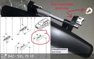 Задняя левая наружная ручка (806072081R), сломался фиксатор металлического держателя тяги замка, похож на гвоздь "<=|"
