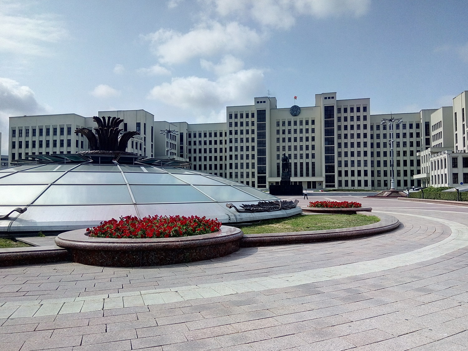 Белору́сский госуда́рственный университе́т (БГУ) Сквер за главным зданием. Туда вход оказывается был только студентов/сотрудников. Я видать сильно отличался и на входе охрана попросила показать документы (1й и последний раз, замечу, за все время где бы то ни было). Я сначала не понял что/как/зачем, начав доставать паспорт, меня остановили вопросом "зачем туда ?" - "сквер, красиво, памятники, приехал в БГУ для проведения экзаменов..." - "Проходите, пожалуйста" Нажмите здесь, чтобы увидеть весь текст
