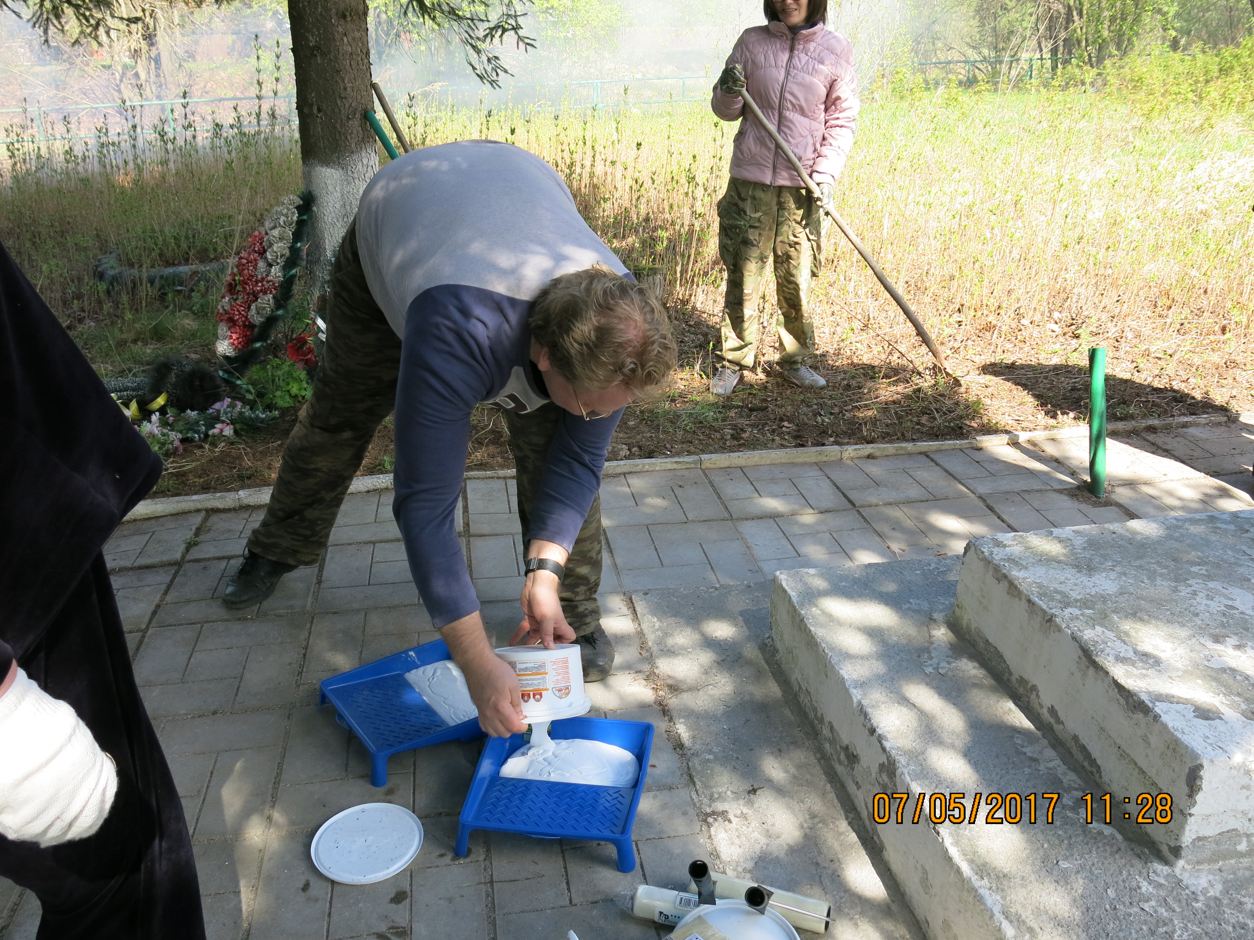 инструмент- мсл, бсл, штыковая, грабли, мет. щётка, губки, ветошь, веник, лопатку саперную и штыковую, вёдра, бензокоса или электро с удлинителем метров на 100, вилы