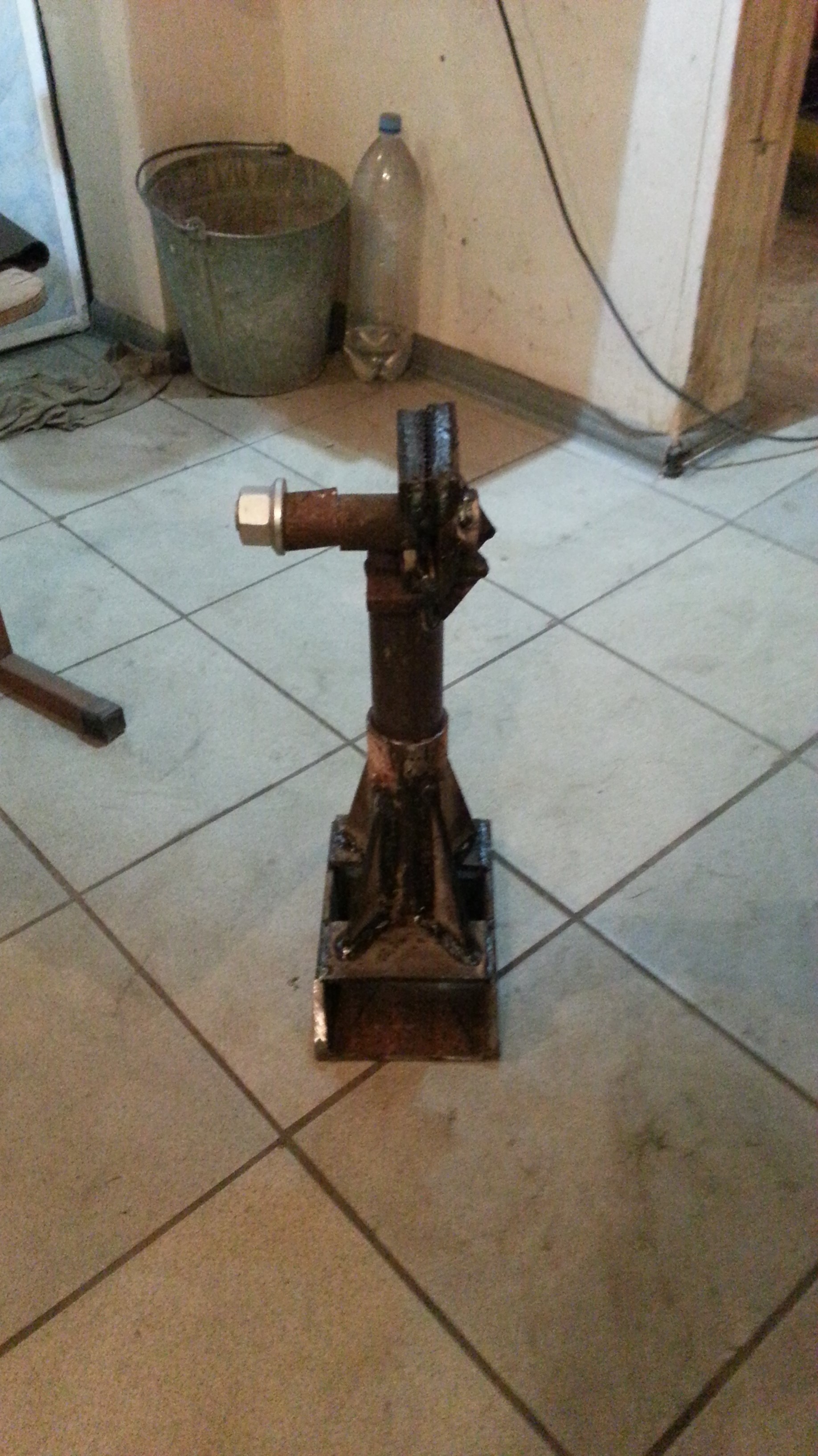 )Швелер, валялся во дворе,пошел на стапель,потом сварил шесть лап,купил аппарат Аврору180(тоже лет десять собирался,все обычным аппаратом варил),гидравлику 10тон,три зажима и две цепи китайские.Нивилир строительный, сделал стойку к нему, к аппарату коляску.