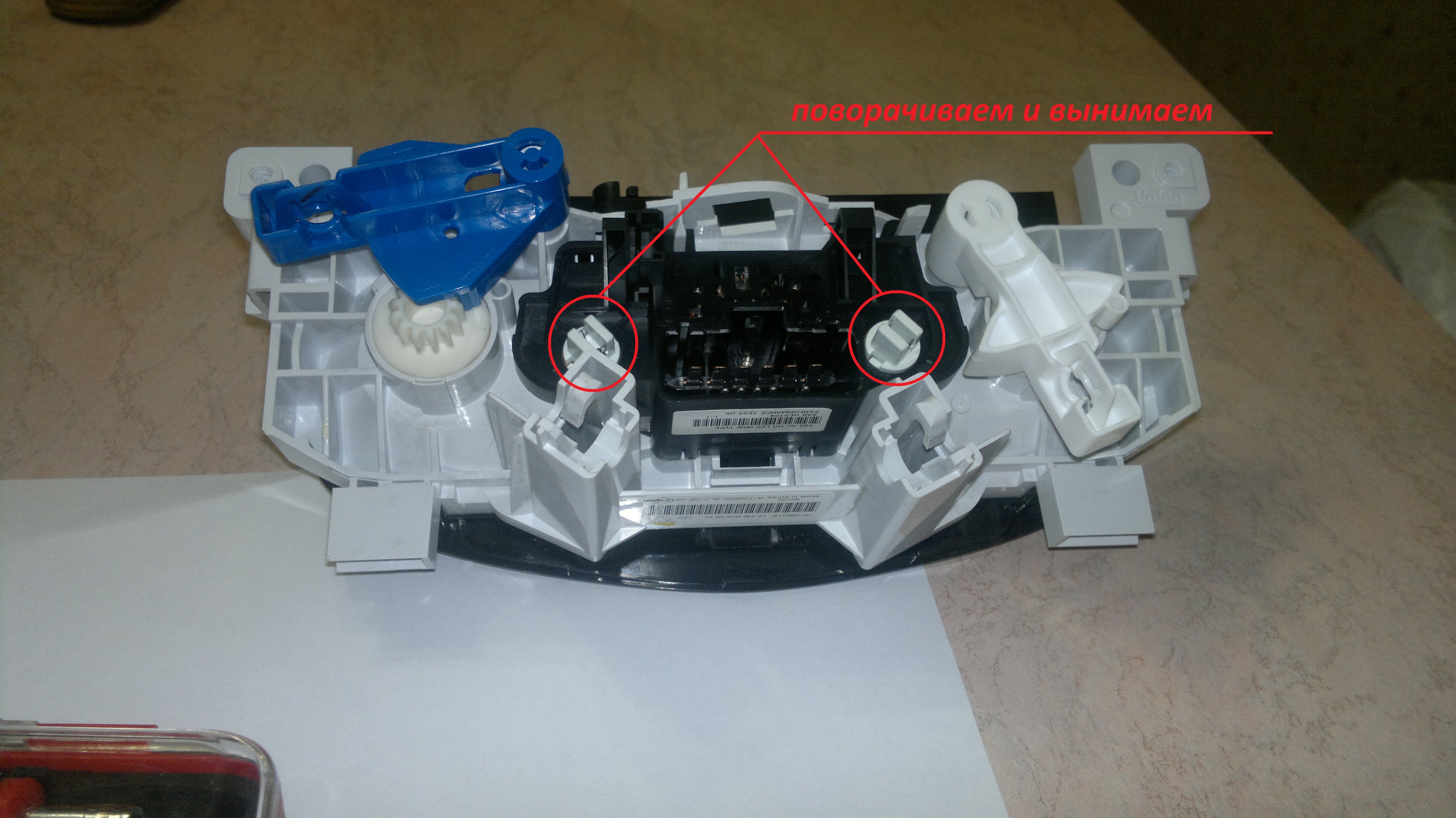 французы ![]() В блоке управления климатической установкой установлено 2 лампочки w1,2w с патроном ![]() для замены не требуется курочить блок управления.... Итак для замены потребуется только ключ torx на 15, аккуратность и времени, примерно, 15...20 минут... 1. Снимаем окантовку центральной консоли, снимать начинаем снизу 2. Если следовать правилам нужно снять декоративную накладку центральной части торпеды (та что идет от кожуха рулевой колонки до перчаточного ящика, над центральной консолью). В теплое время можно ее и не снимать, а аккуратно вывести фиксаторы декоративной панели центральной консоли... 3. Снимаем декоративную накладку центральной консоли (без демонтажа накладки по пункту 2 аккуратно отжимаем с середины и снимаем)... 4. Отстыковываем разъемы кнопок 5. Отворачиваем саморезы крепления блока управления климатической установкой 6. Снимаем блок управления климатической установкой с верхних фиксаторов сместив блок во внутрь центральной консоли и выводим (вверх) из пазов нижние фиксаторы... Затем немного разворачиваем блок для того чтобы снять разъем или отсоединить тросы управления заслонками 7. Развернув немного блок, нам становится доступна замена ламп подсветки ЗЫ в таком положении не удобно, но возможно (не сложнее замены лампы ближнего/дальнего с правой стороны у Логана). Для легкой замены, требуется отсоединить разъем от блока климатической установки и 1 трос управления заслонками (из синего рычага - управления температурой), в таком случае блок можно развернуть больше и замена лампы будет гораздо удобнее... 8. Поворачиваем цоколь перегоревшей лампы и вынимаем цоколь с лампой из пазов, меняем лампу и собираем в обратной последовательности...