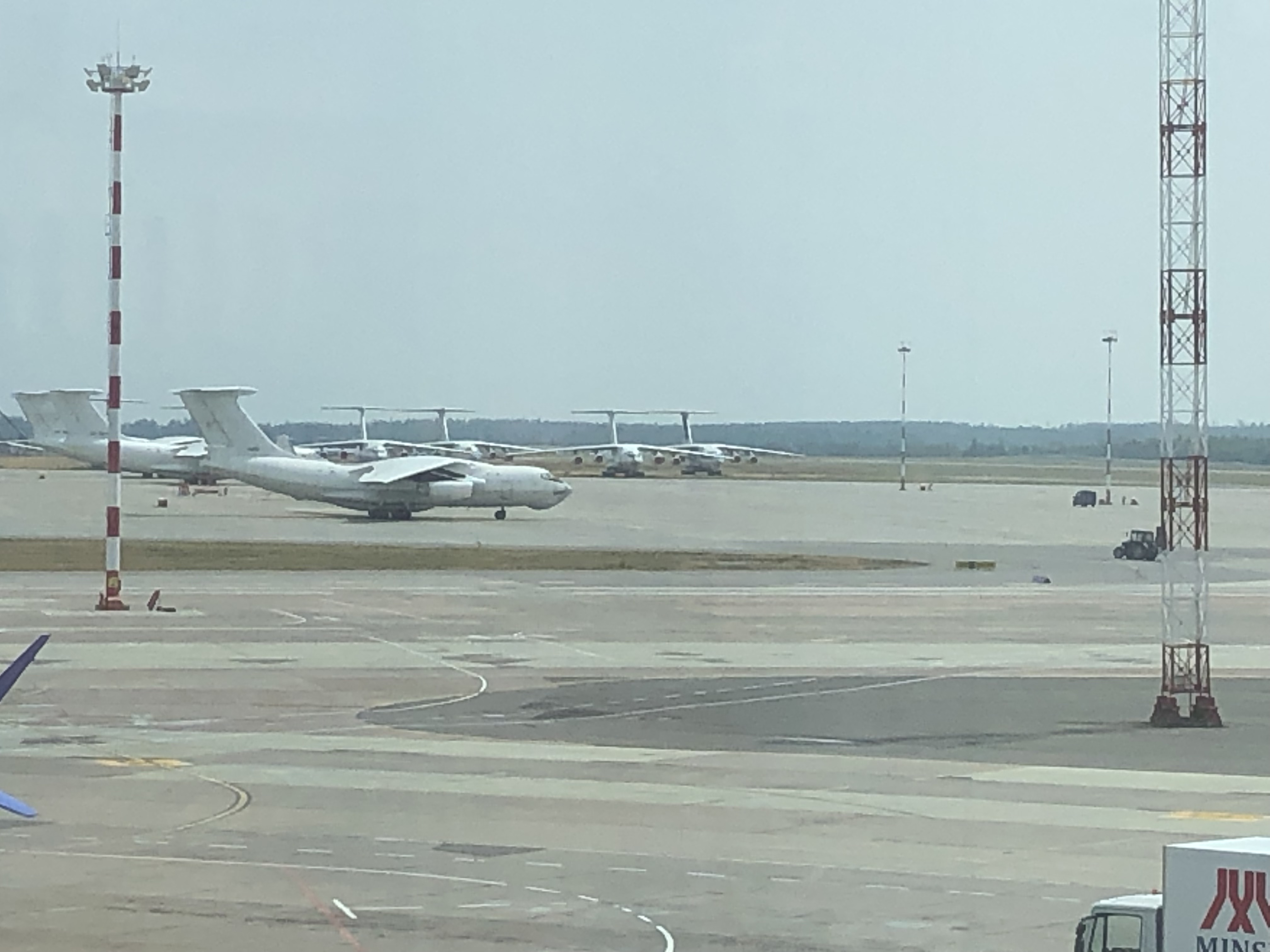 В Минском аэропорту на площадках и у ангаров на аэродроме насчитал, примерно, 11 Ил-76 без опознавательных знаков (просто белые, цифры не видно, далековато)