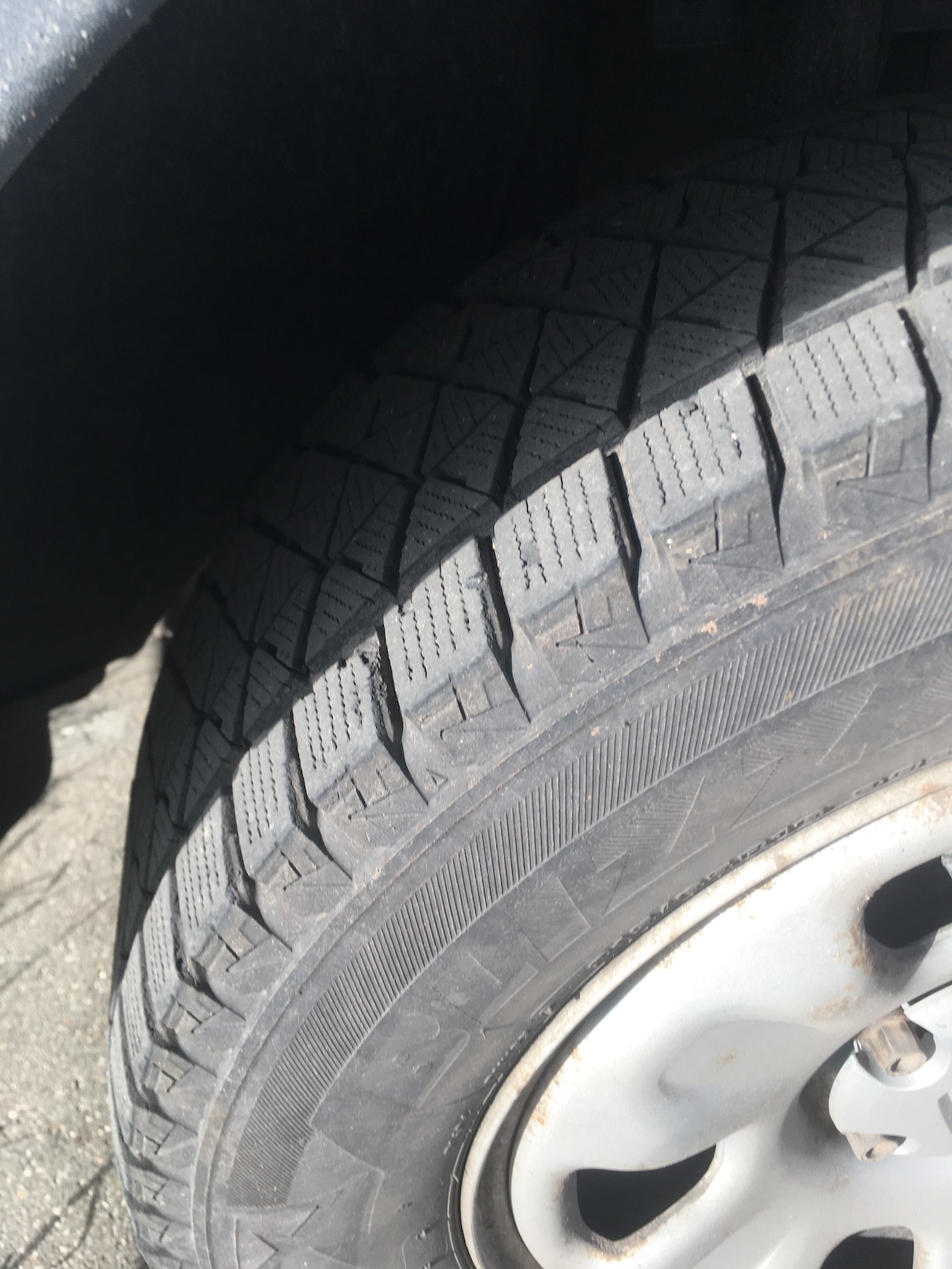 А у меня вот такая напасть на колесе которое 2 зимы было переднем, а теперь перенесено на заднюю ось. Как будто мыши грызли но только в одном месте. |