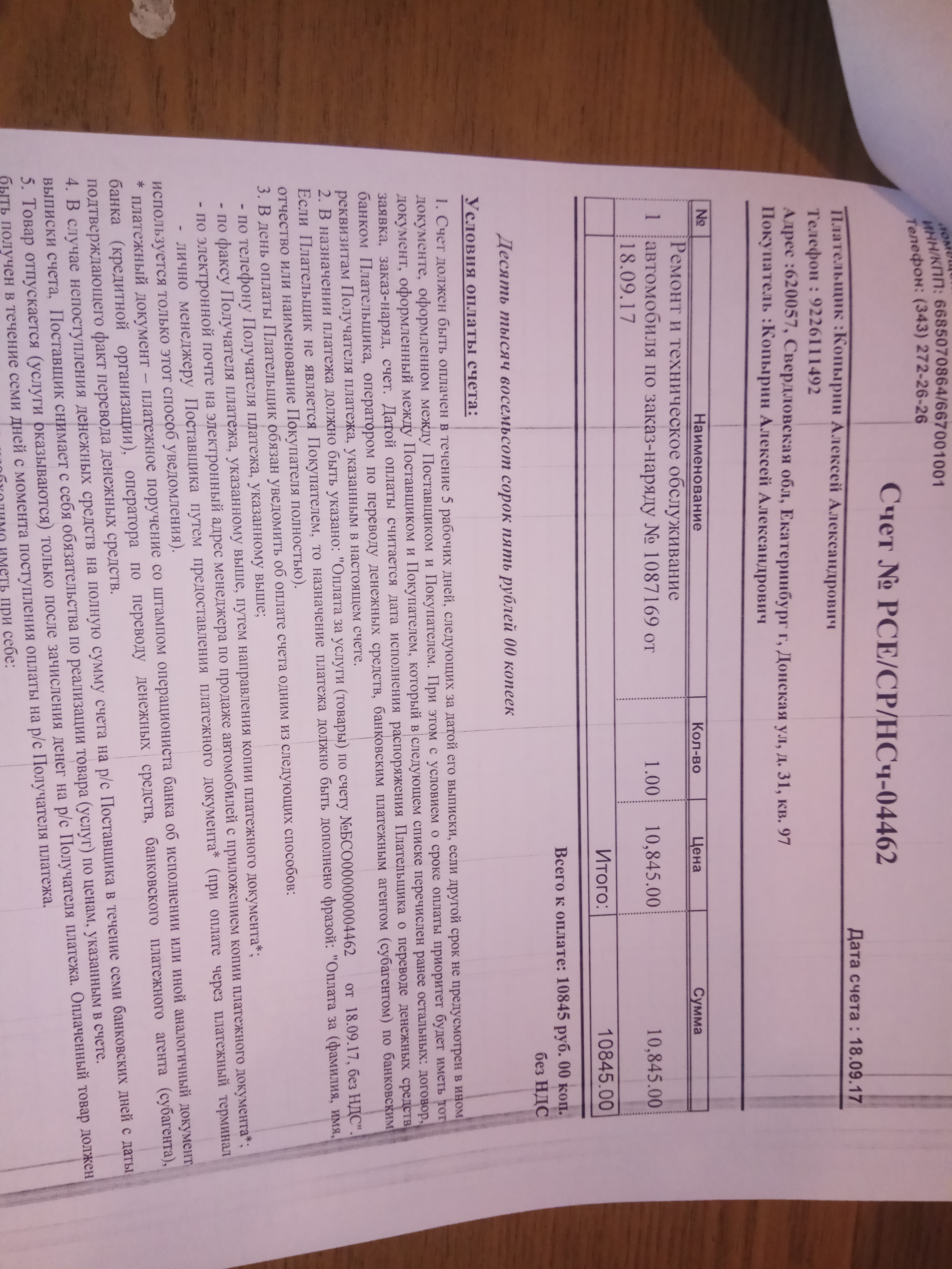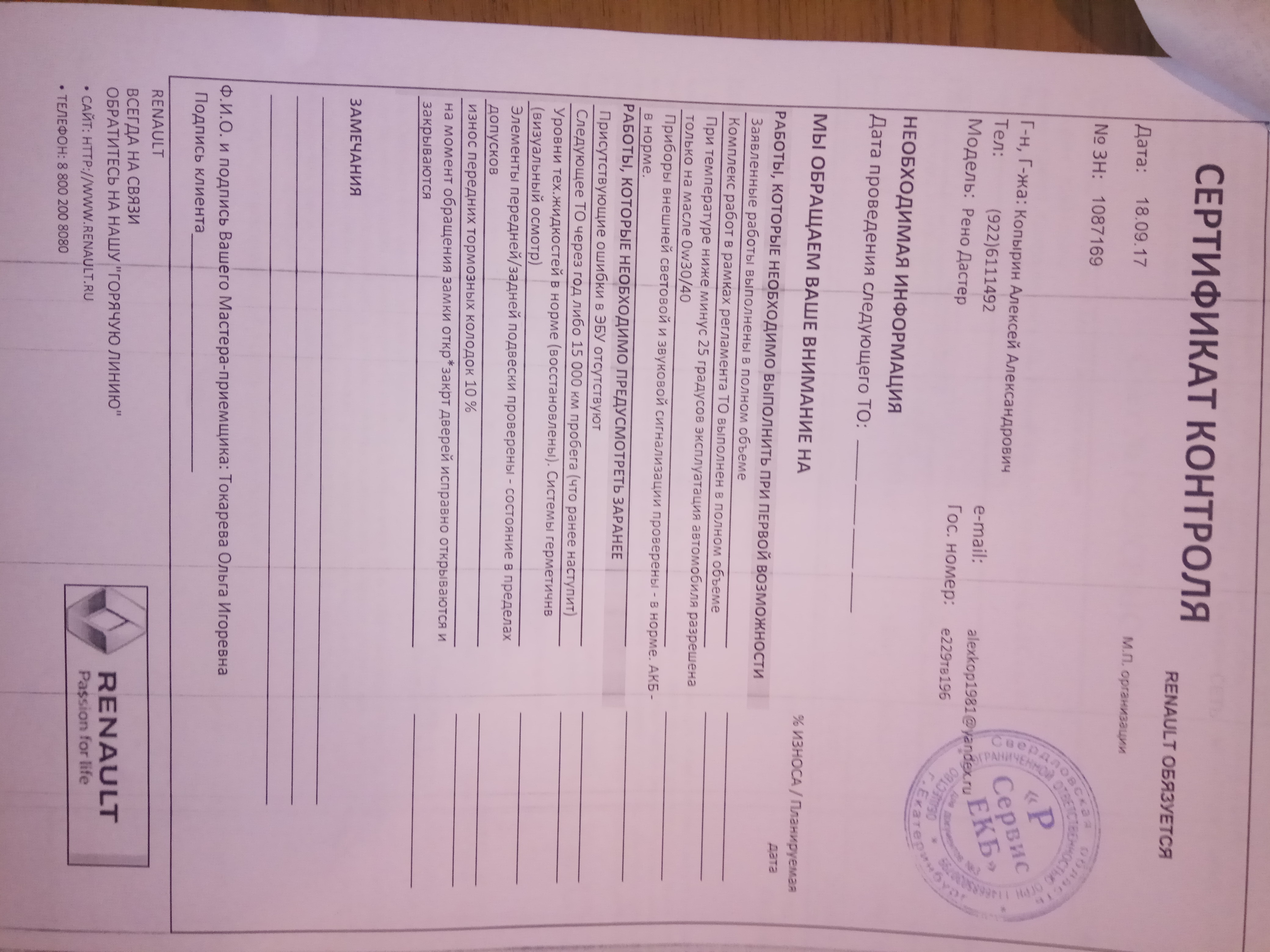Прошло ТО 15000 отдал денег 10845 р. Из работ масло, фильтра, клеммы обработали и тросик ручника подтянули. А ну ещё мойка. АВТОМИР в Екатеринбурге на Новгородцевой
