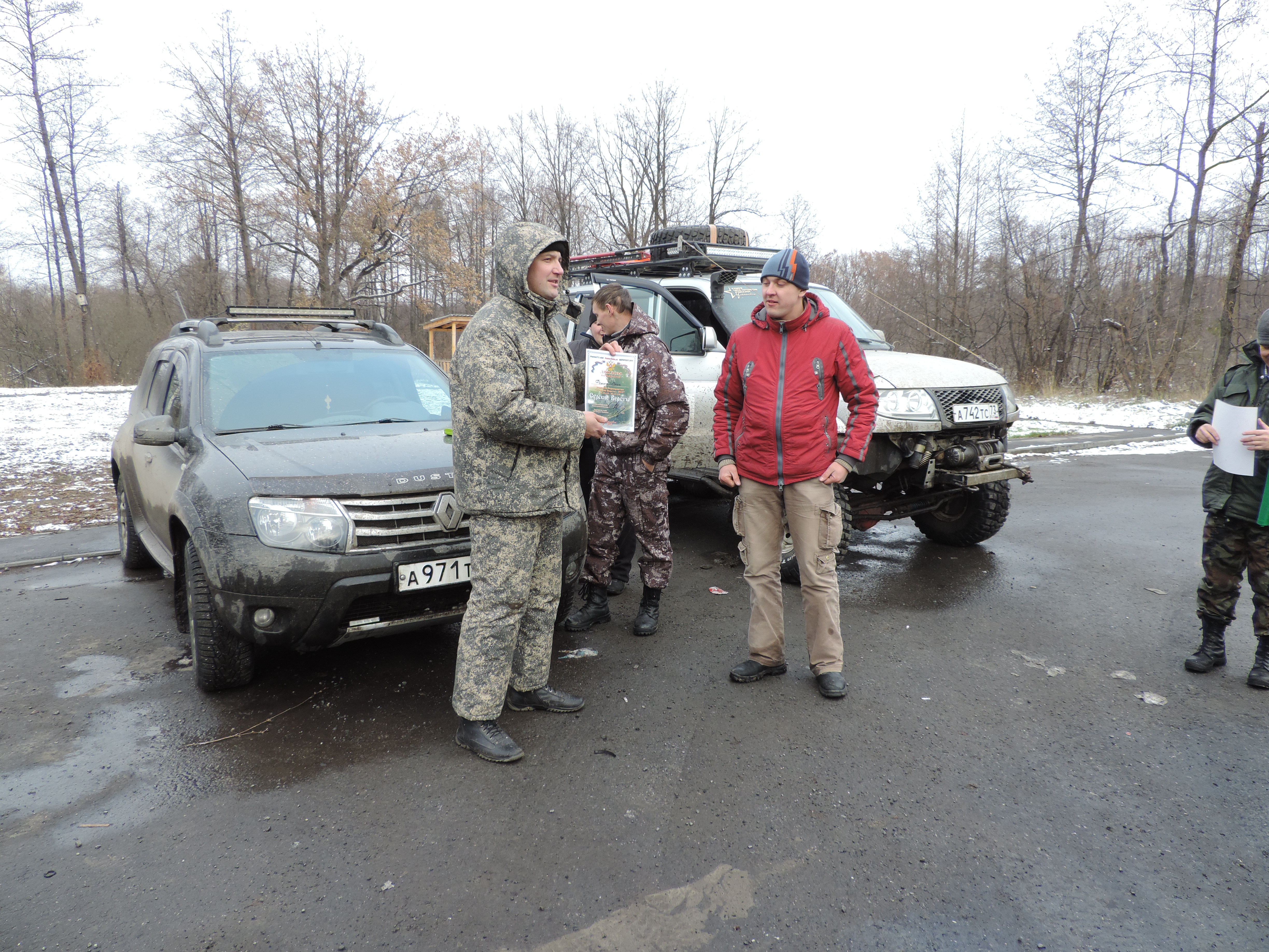 Группу с красного маршрута к сожалению не дождались, ребята из Самары и Сызрани с маршрута сразу уехали через Базарный Сызган до дому (сейчас изыскиваем пути передать дипломы и сувениры)... Остальные экипажи, Миша, Игорь и еще один Миша долго бились на маршруте (к вечеру уже подтаяло и раскиселело дороги)... Им дипломы вручили уже в городе!