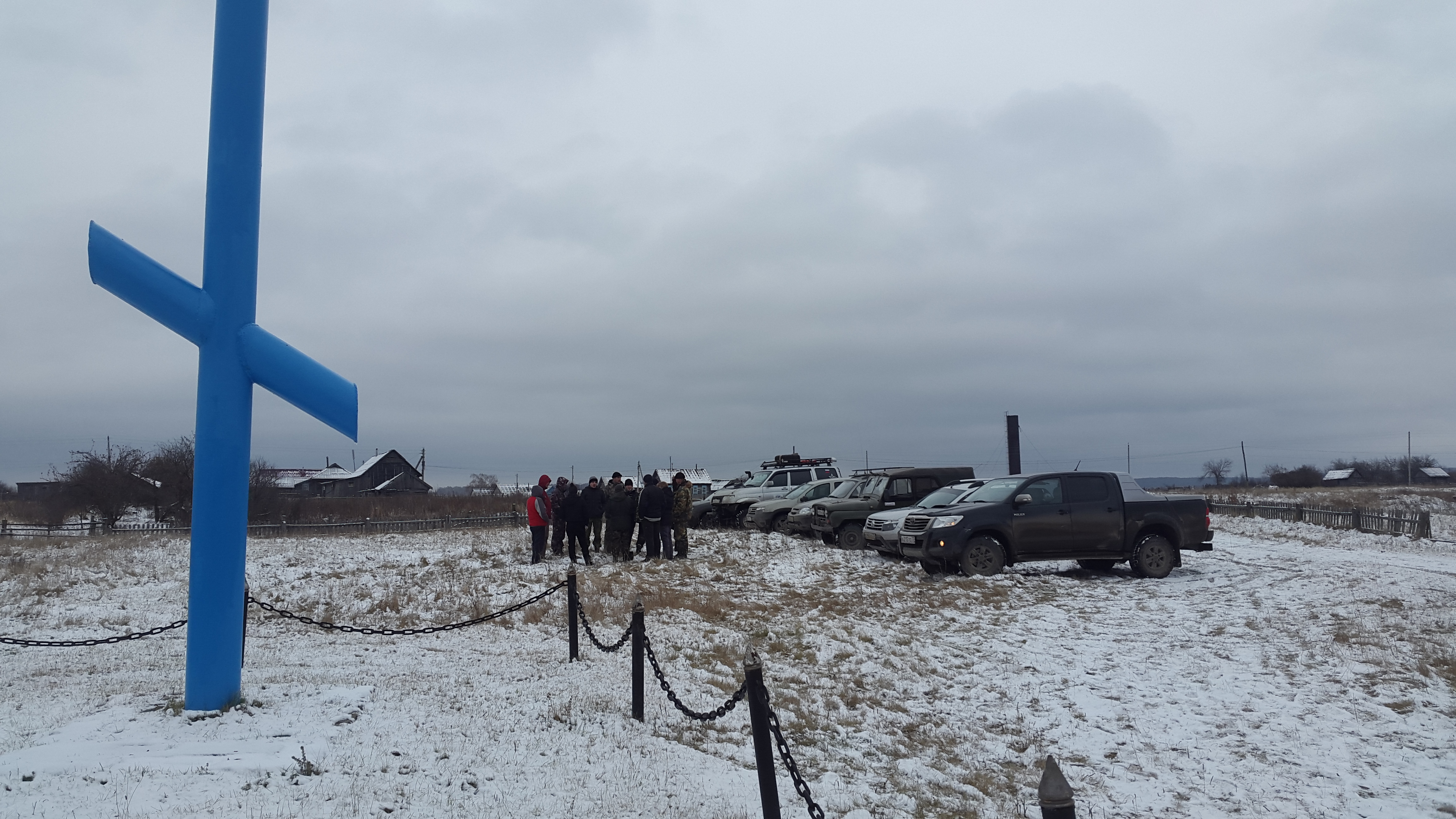 Нагнали группу идущую по синему маршруту на предпоследней точке, у поклонного креста...