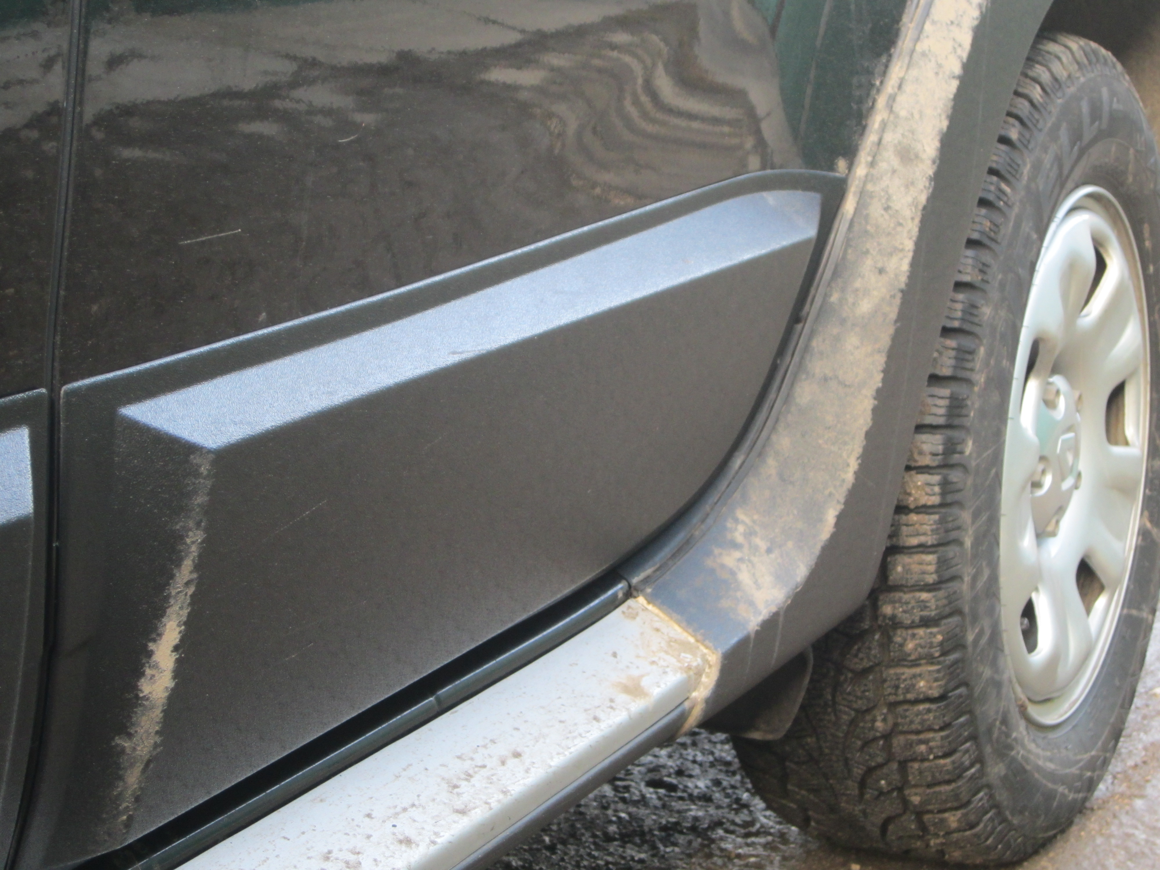 ![]() Сегодня же сделал фото бортов машины после того как оторвал брызговик на ЖГ-2014 и недавнего снегопада. Там где брызговик отсутствует сторона более грязная.